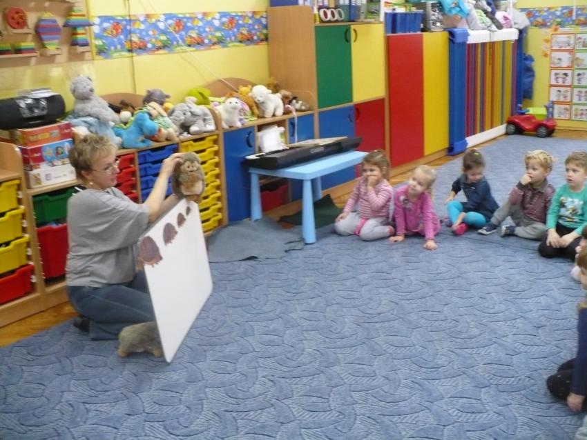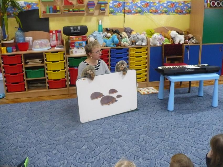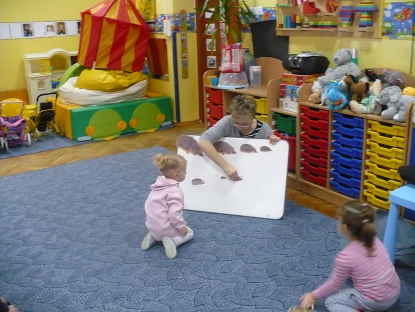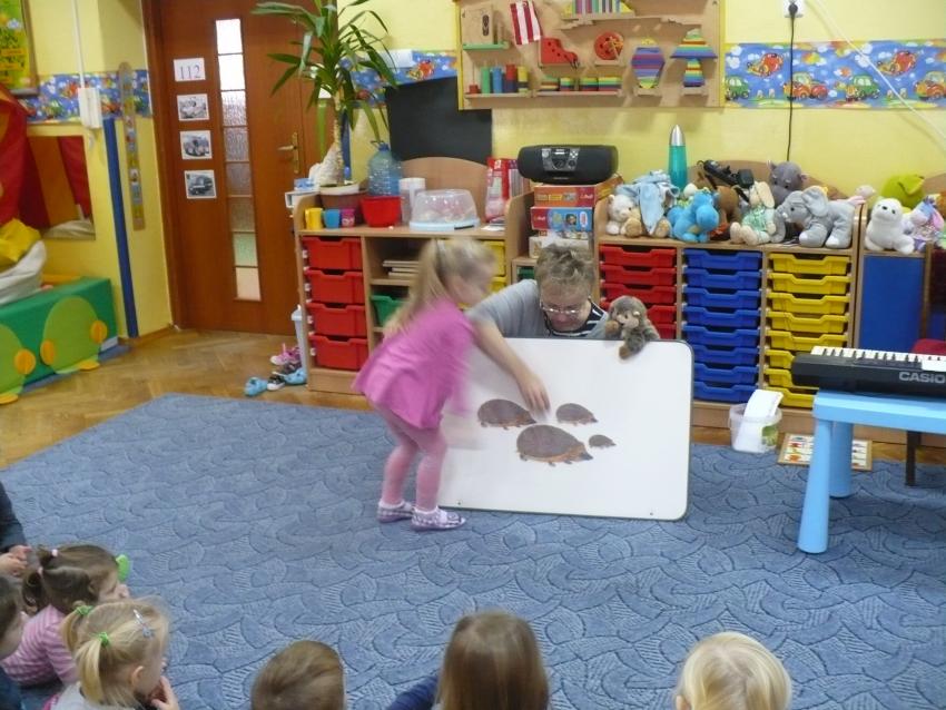 Krasnoludki wiedzą już, że las to dom wielu zwierząt, a jedno z nich ma kolce ostre jak długie igiełki sosny czy krótkie świerku. Rodzina jeży z pobliskiego lasu zachęciła dzieci do porównywania wielkości.
