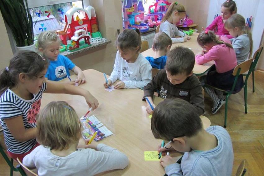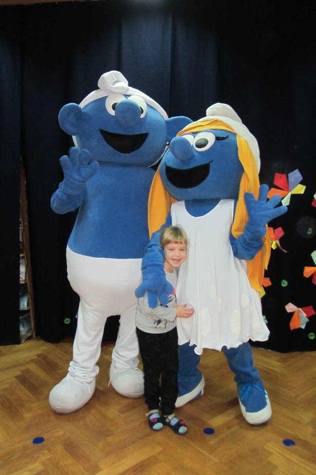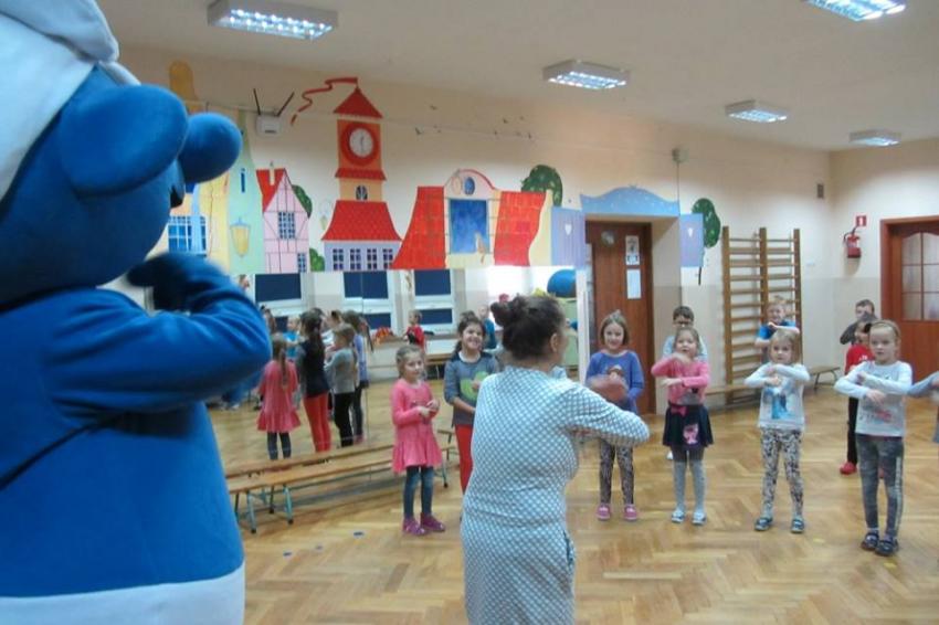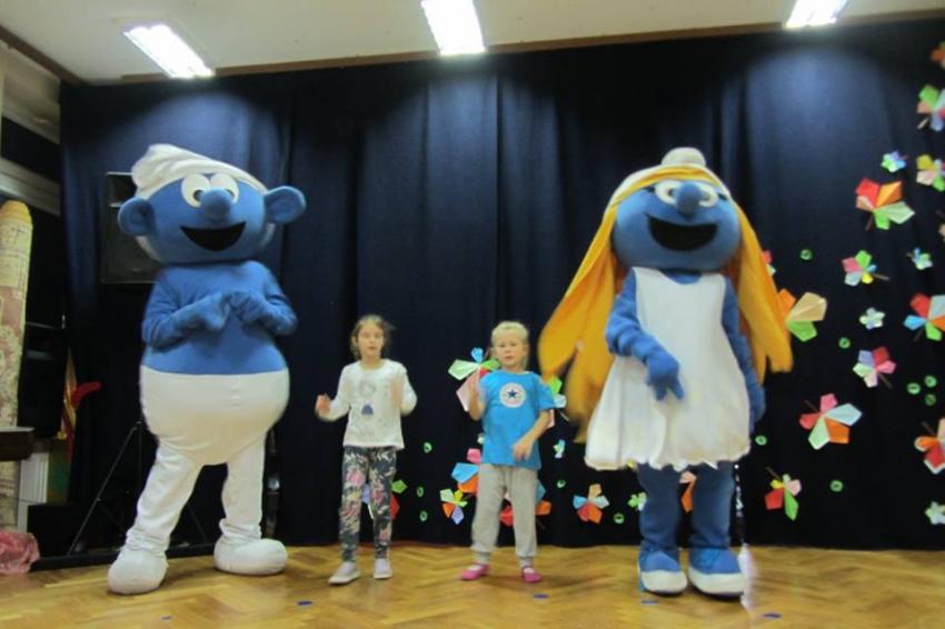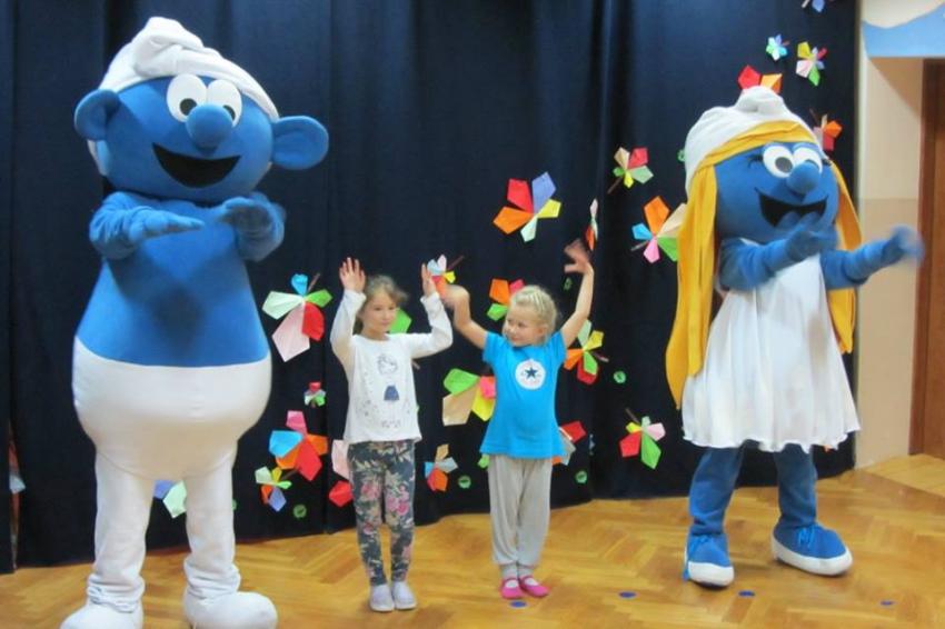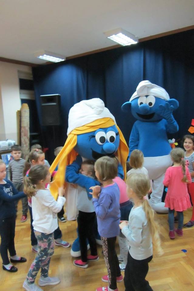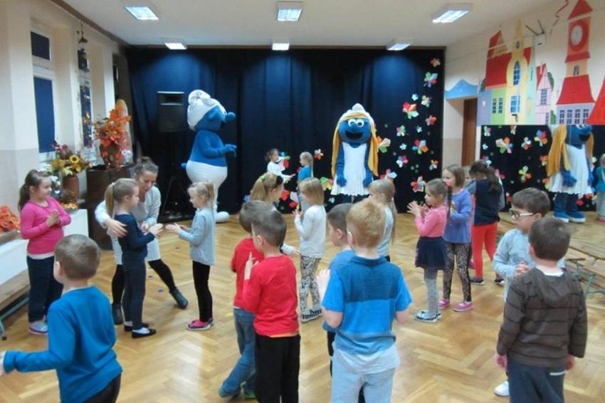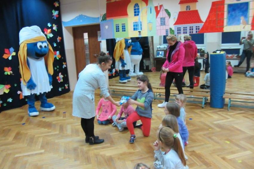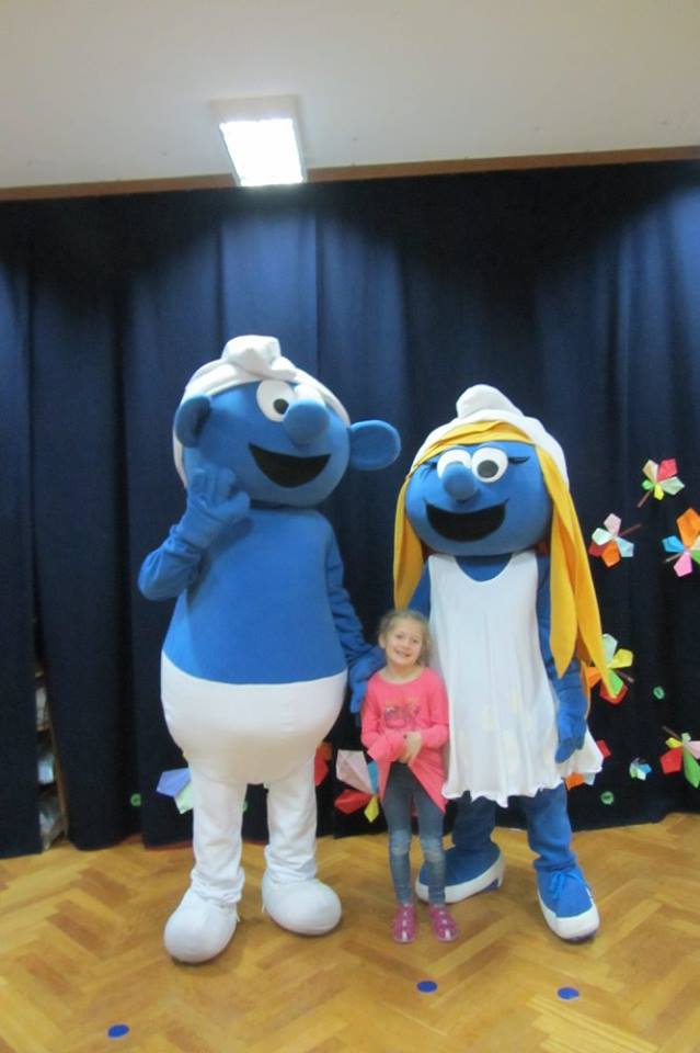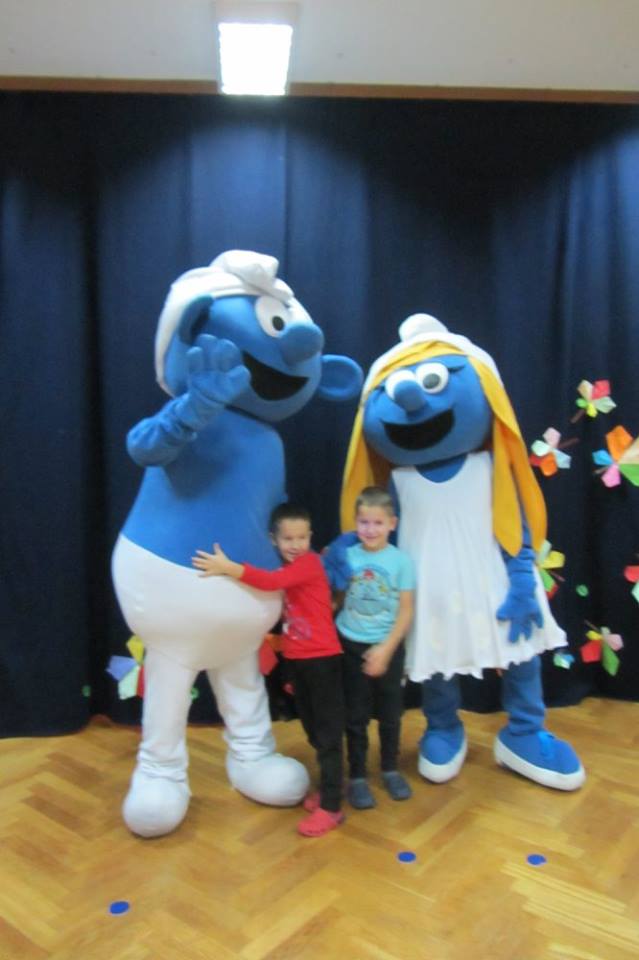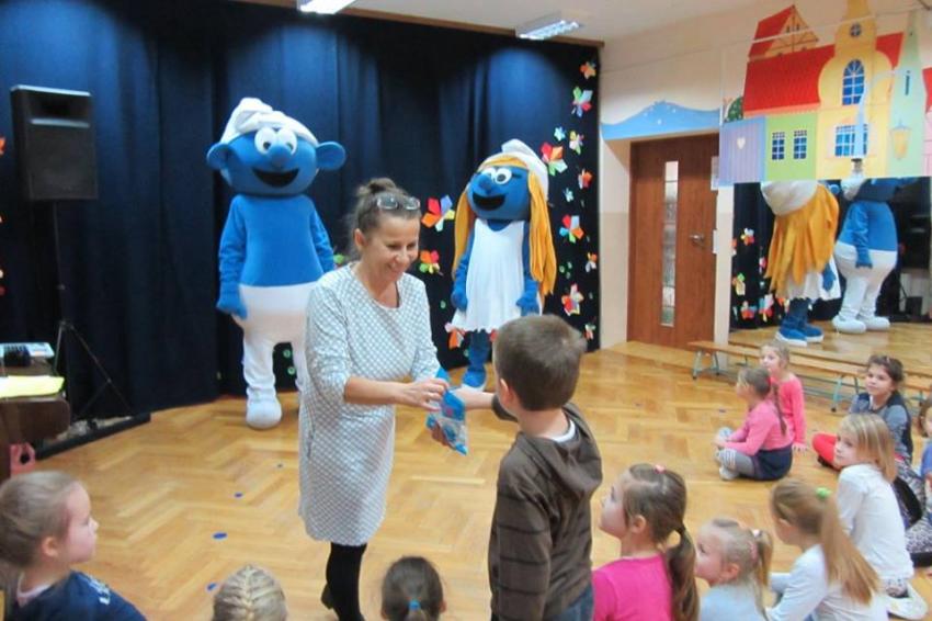 Impreza animacyjna „Smerfy” zorganizowana przez mamę Noeli.Smerfy zatańczyły z całą grupą dwa tańce: „A ram zam zam” i „ Chocolate Choco choco”. Odgadywały zagadki zadawane przez Smerfetkę i Smerfa Ciamajdę.Otrzymały nagrody w postaci malowanek i pianek smerfowych.