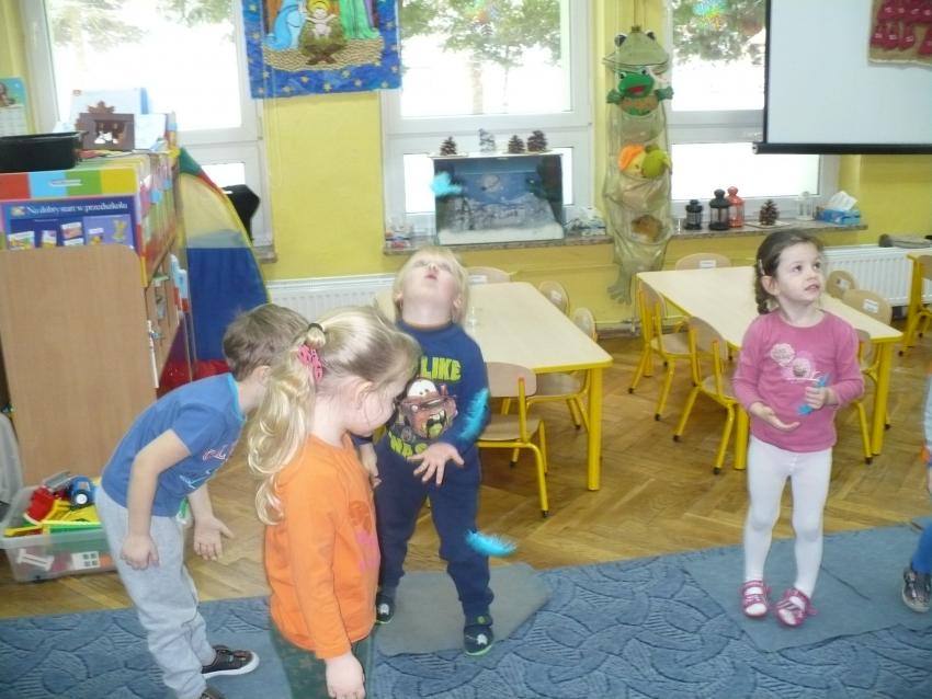 Krasnoludki sprawdzają, czy aniołki rzeczywiście są leciutkie jak piórko.
