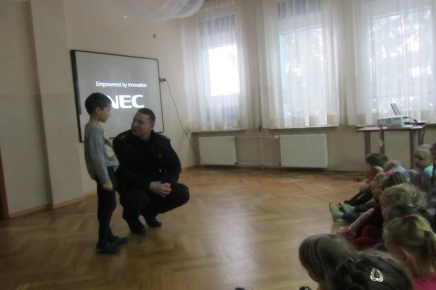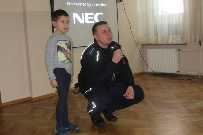 Spotkanie z policjantem, którego tematem były bezpieczne ferie