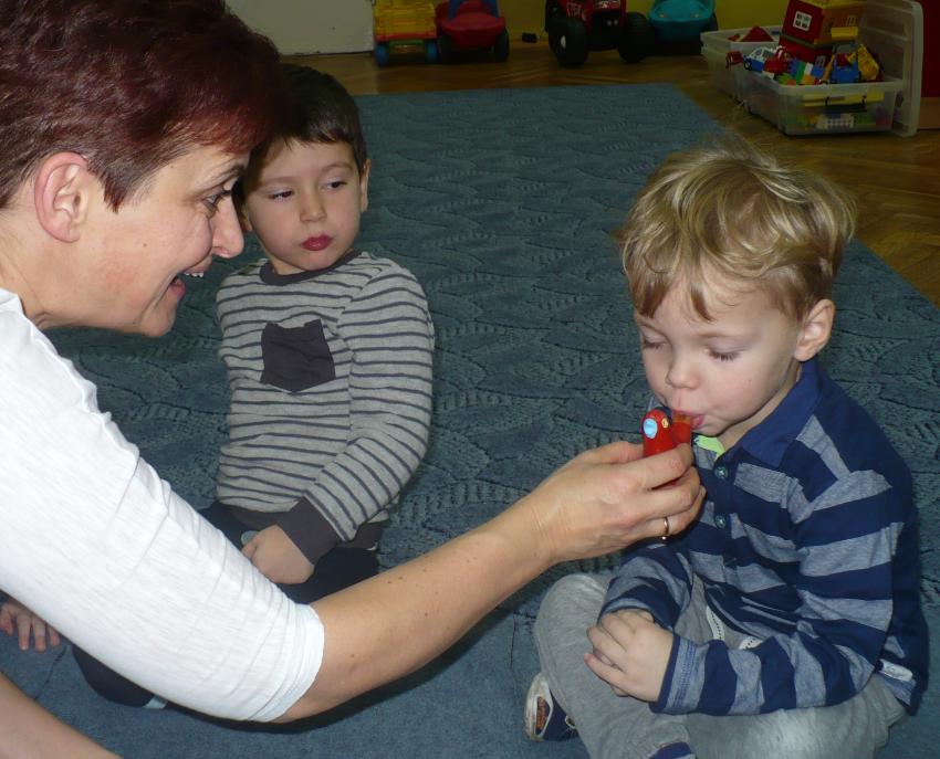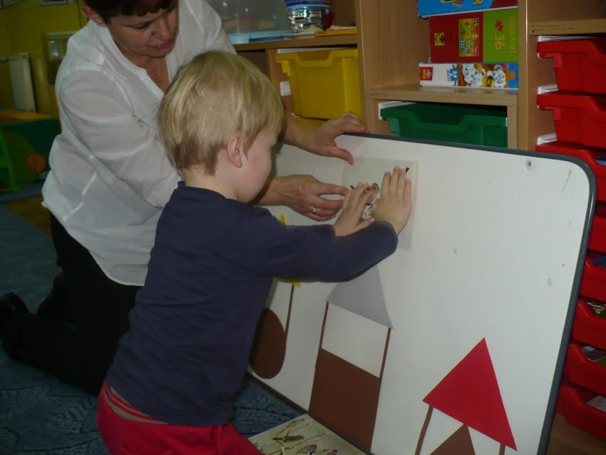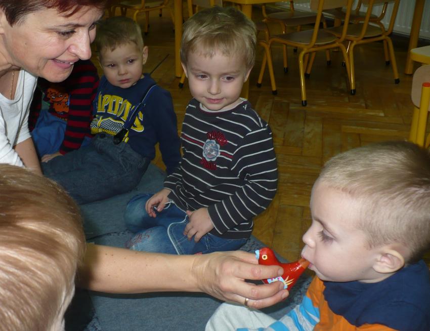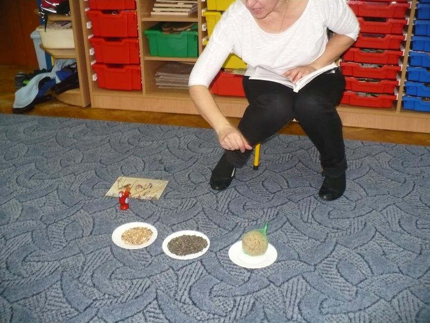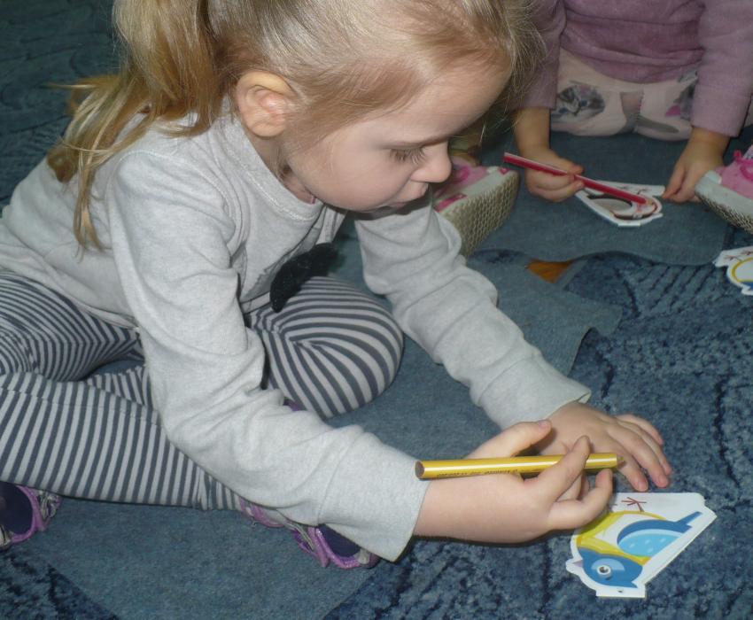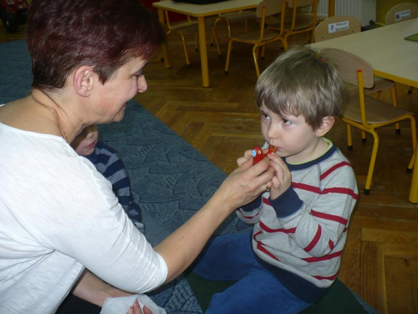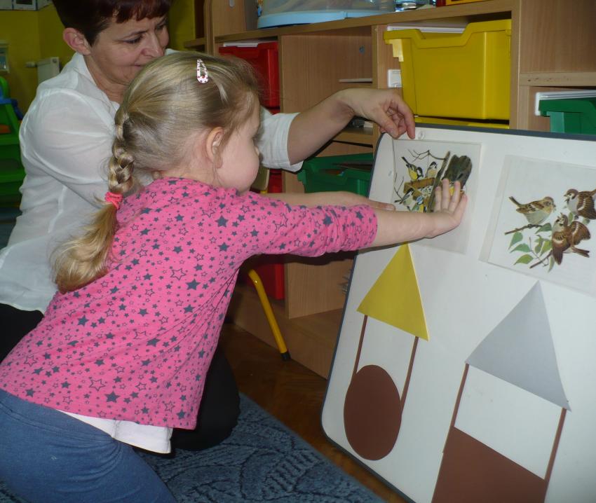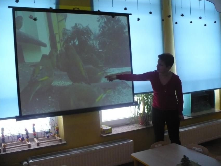 Krasnoludki wiedzą już, że zimą koniecznie trzeba dokarmiać ptaszki - wtedy wiosną podziękują nam pięknym śpiewem. Wiedzą też jakie są ulubione przysmaki wróbelków, sikorek i gili. Przy tej okazji utrwaliły też nazwy figur geometrycznych.