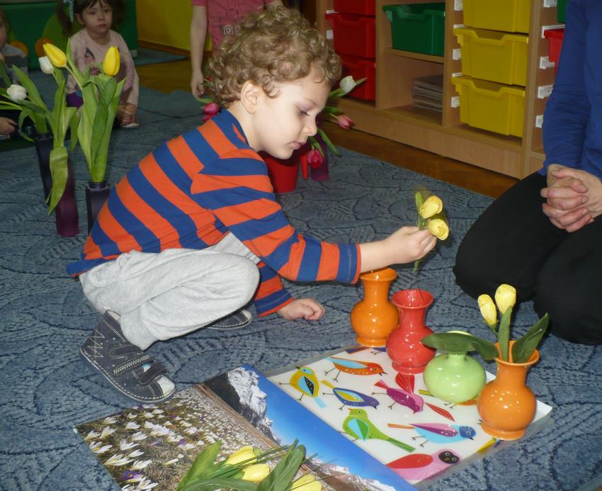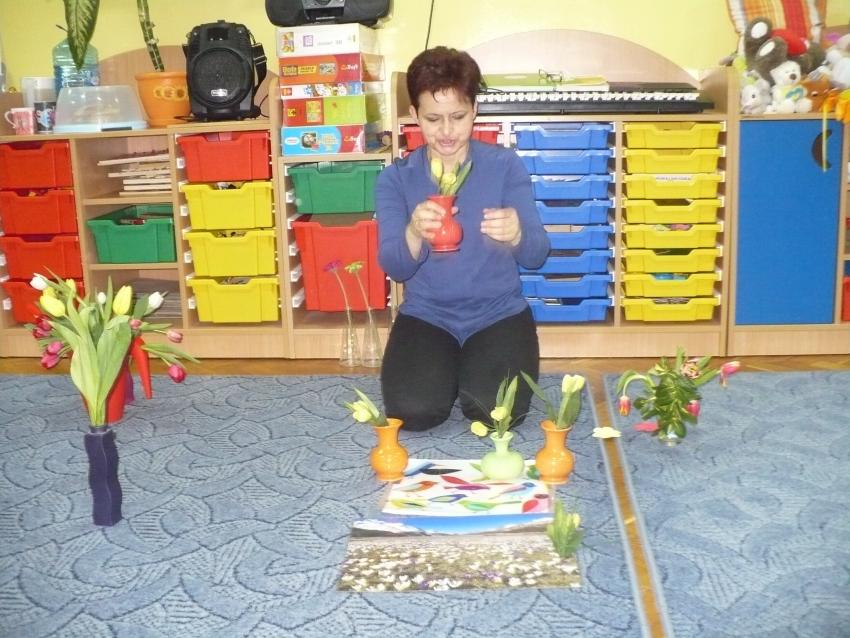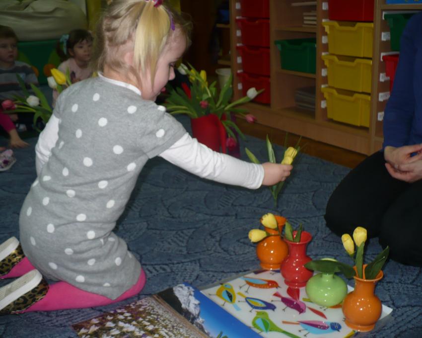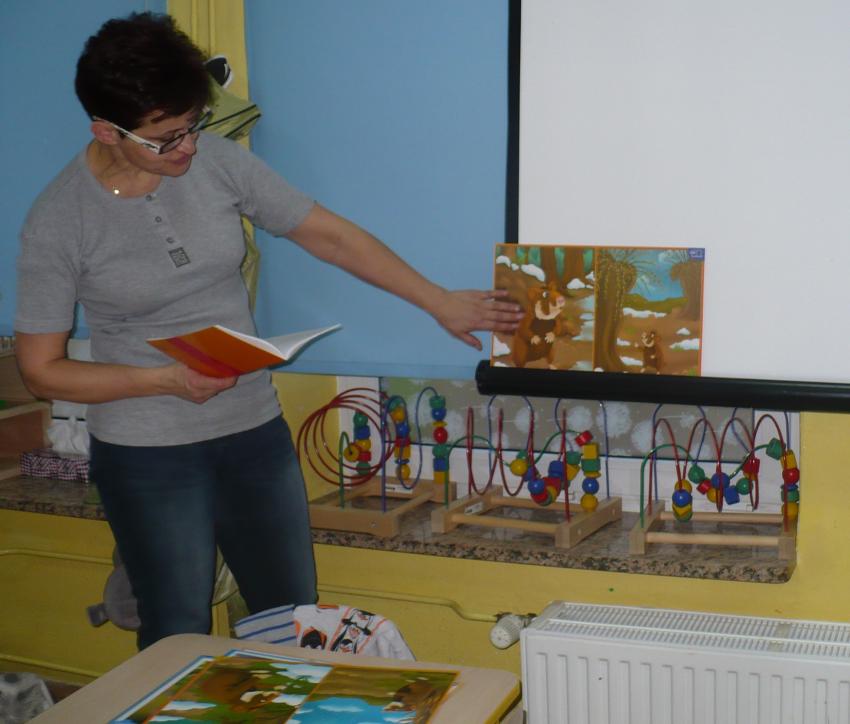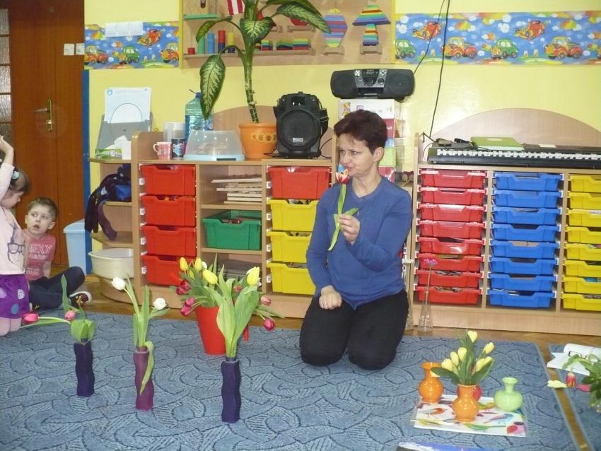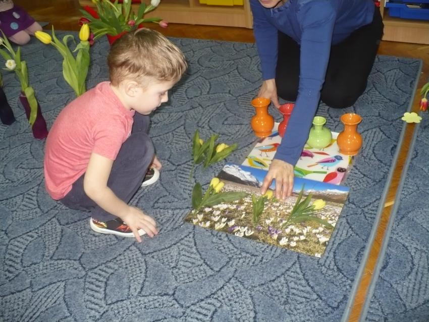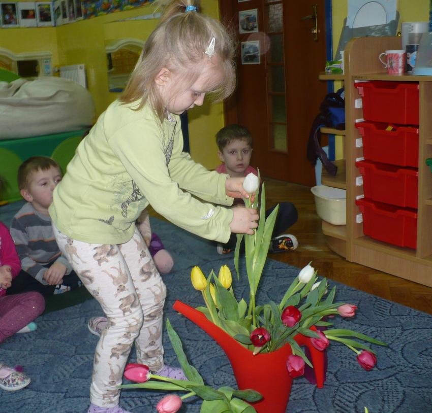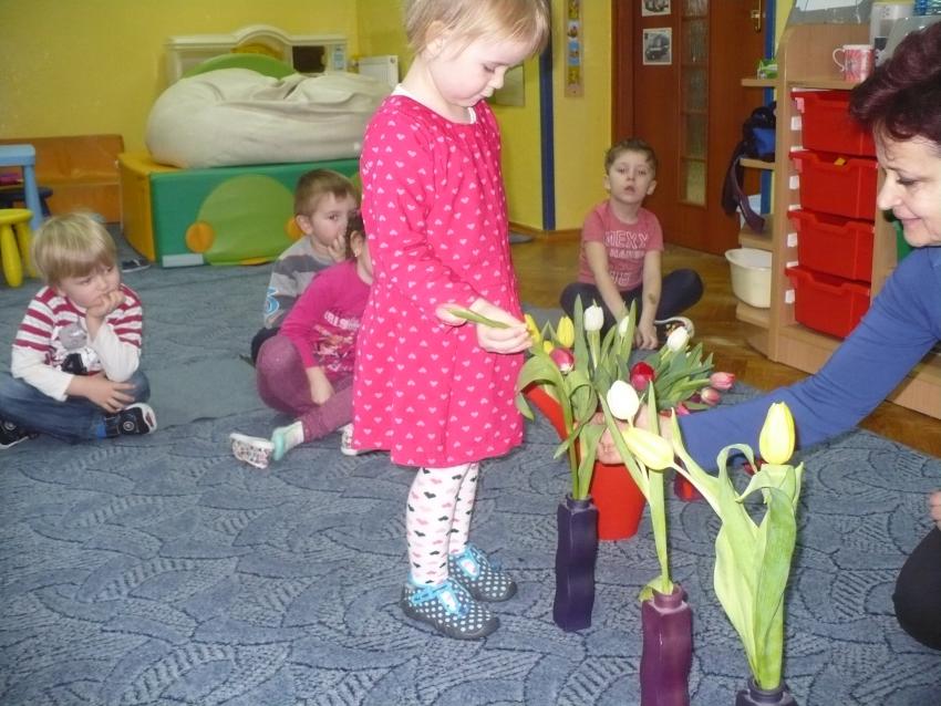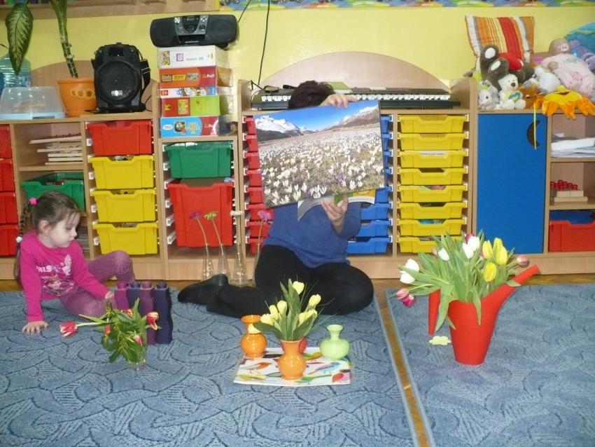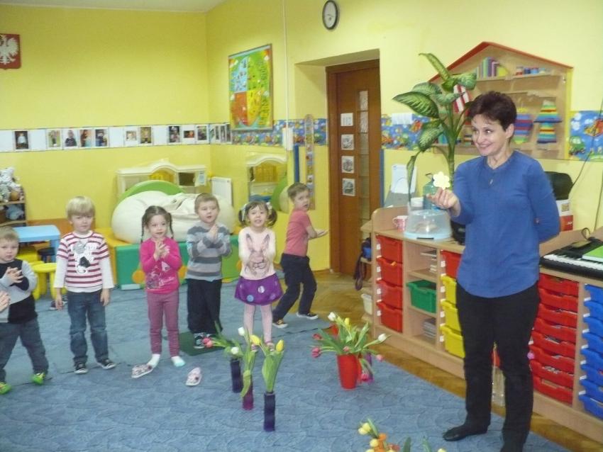 Krasnoludki razem z chomiczkiem poznają pierwsze oznaki wiosny. Już wiedzą, że przyroda po zimowym śnie zaczęła bydzić się do życia.