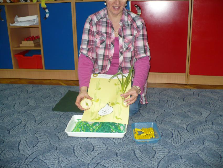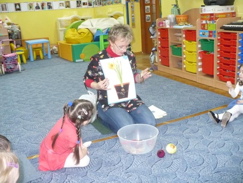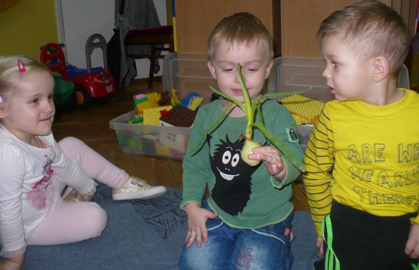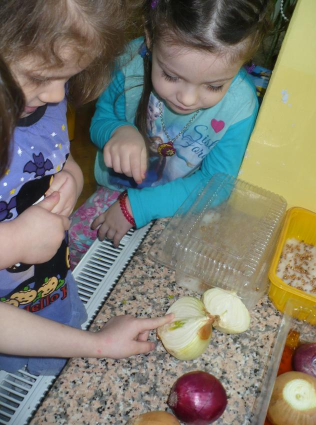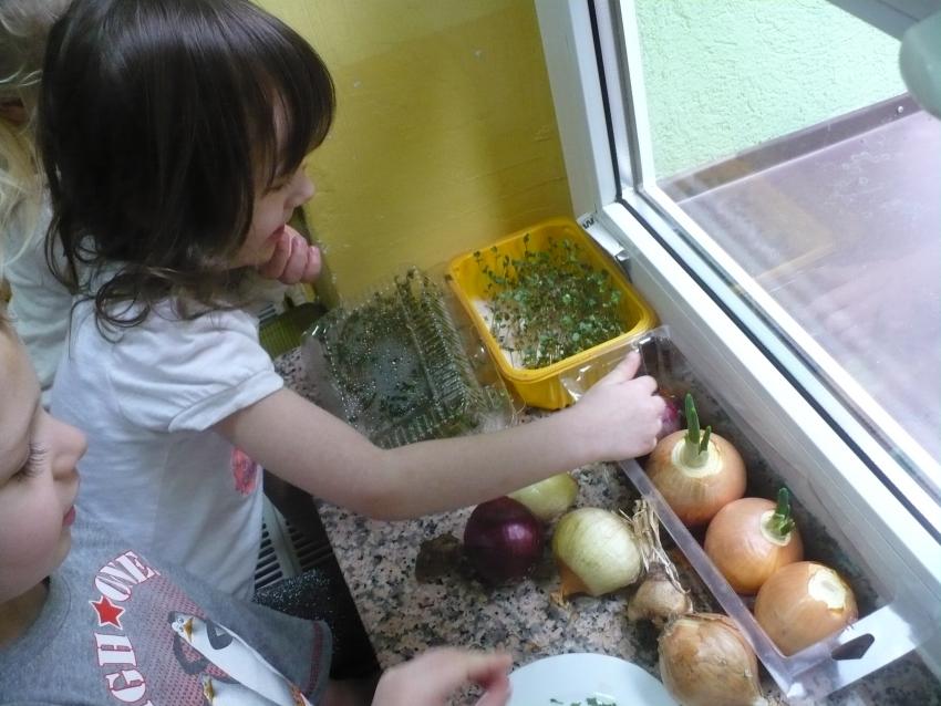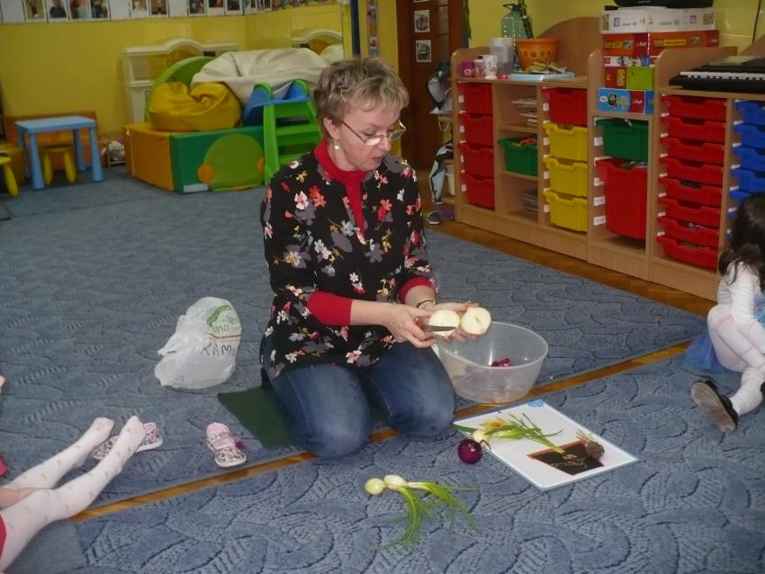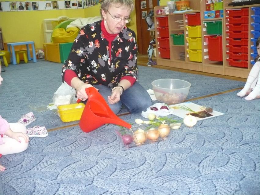Cebulka – bohaterka dziecięcej piosenki zachęciła maluszki do eksperymentów przyrodniczych. Krasnoludki założyły własną uprawę szczypioru, rzeżuchy, kiełków rzodkiewki i fasoli oraz przekonały się, że z cebuli wyrasta szczypior a nie pomidor (jak to wcześniej twiedziły). Zaobserwowały też, że nasiona w szklarni wcześniej kiełkują, a rośliny szybciej rosną. Przy okazji zabaw badawczych dowiedziały się, co znaczy określenie – ubrać się na cebulkę.