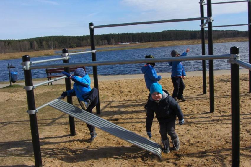 Zabawy Gumisiów i Elfów na nowym placu zabaw nad zalewem