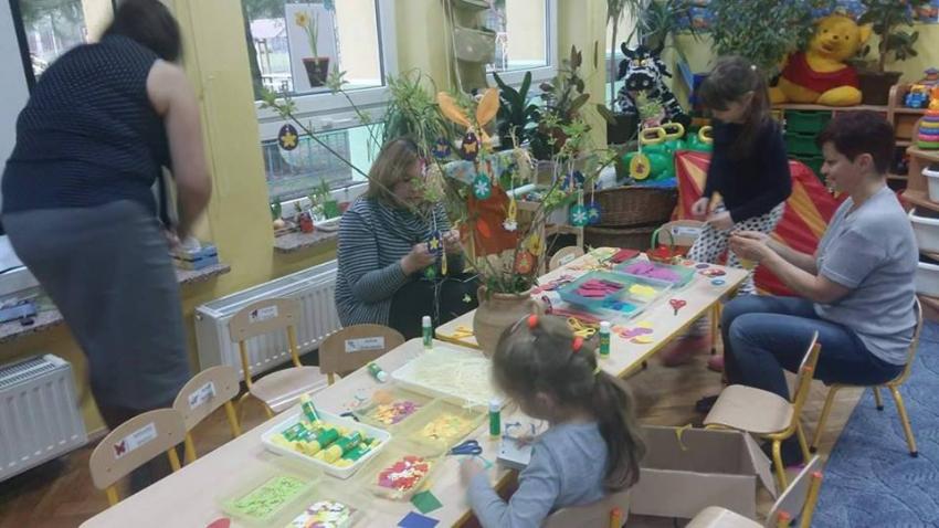 6 kwietnia w naszym przedszkolu odbyły się Warsztaty Wielkanocne dla dzieci i rodziców.W każdej sali można było wykonać różne ozdoby świąteczne : kolorowe jajka, zajączka wielkanocnego, gałązkę z kwiatkami, koszyczek, kurczaczek oraz wiele innych ciekawych ozdób.