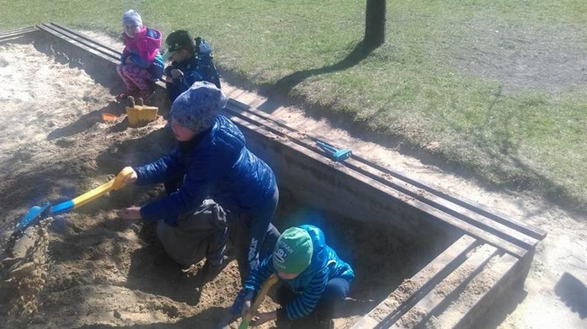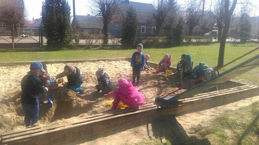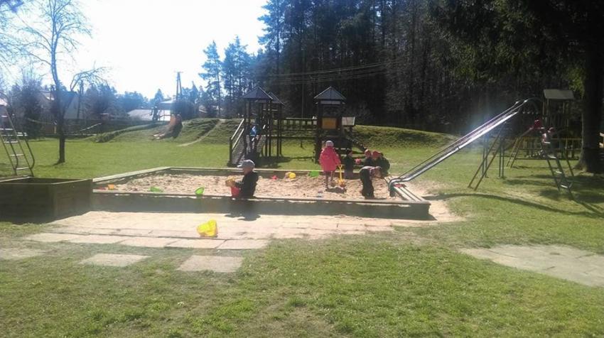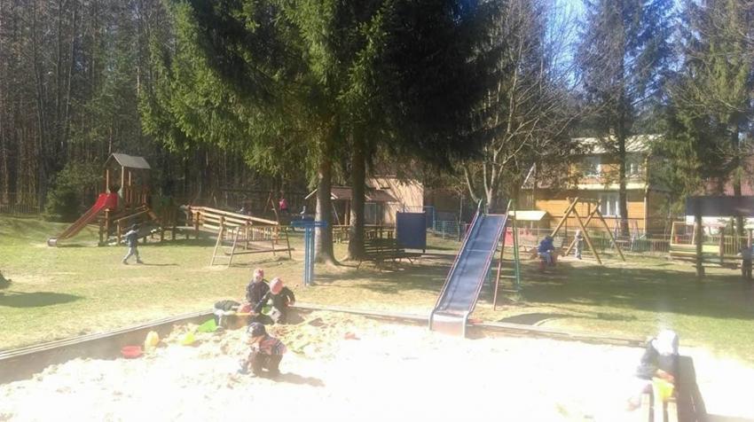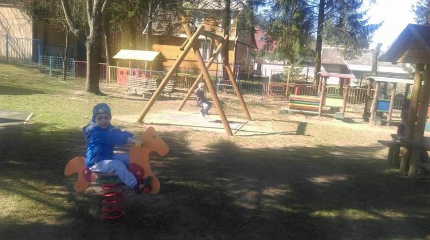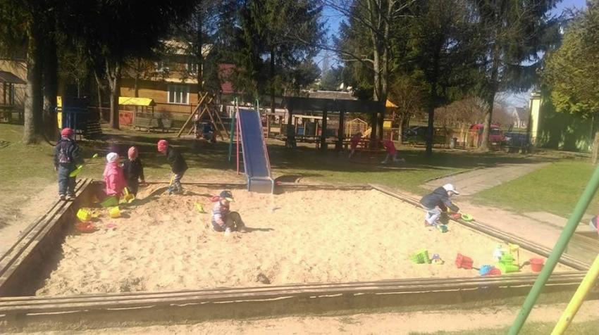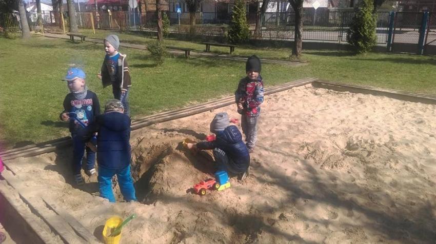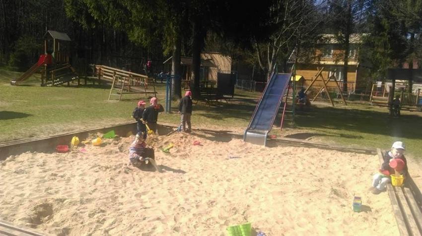 Elfy i Muminki podczas wiosennych zabaw swobodnych w ogrodzie przedszkolnym