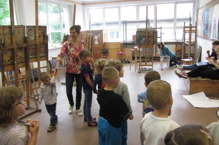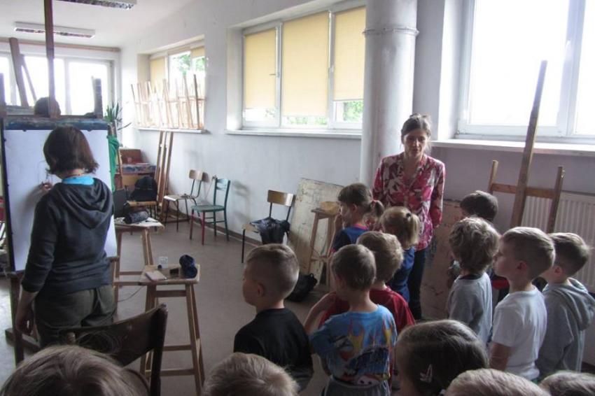 14.06.2017 udział grupy "Smerfy" w warsztatach plastycznych w pracowni grafiki prowadzonych przez panią Honoratę Zamostną