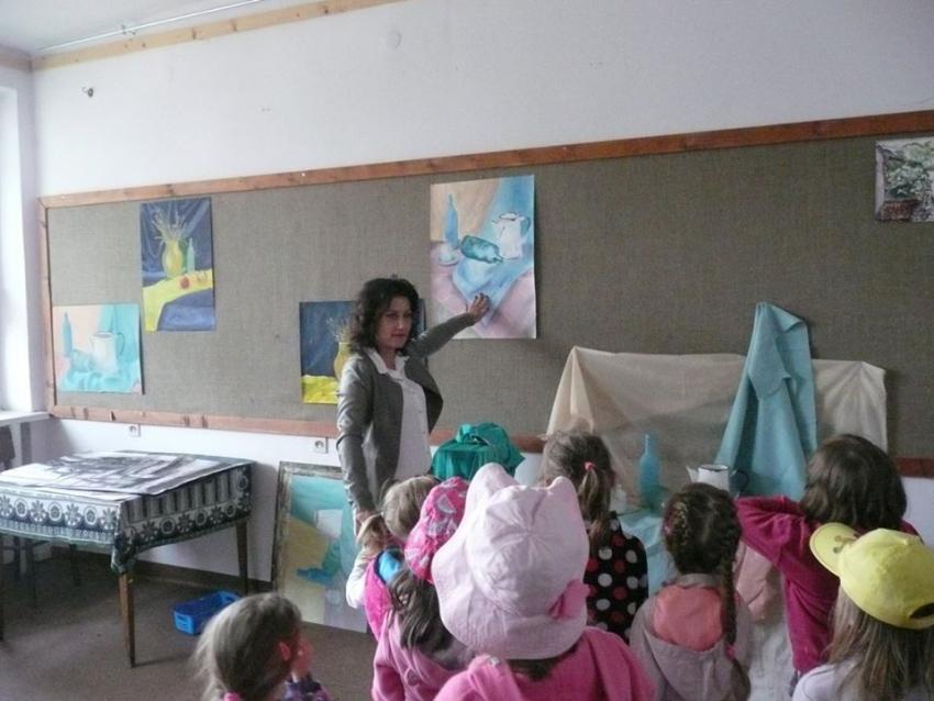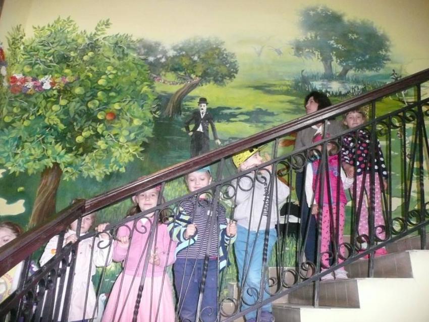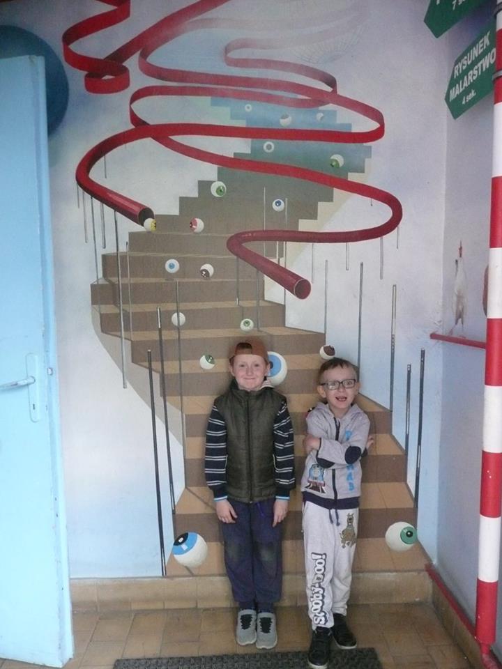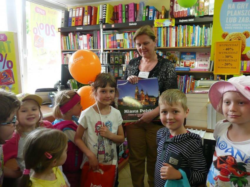 Smerfy z wizytą w Restauracji Bohema, Liceum Sztuk Plastycznych i w księgarni w Supraślu 02.06.2017r.