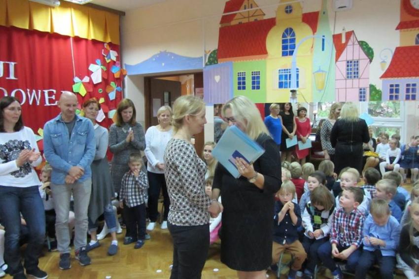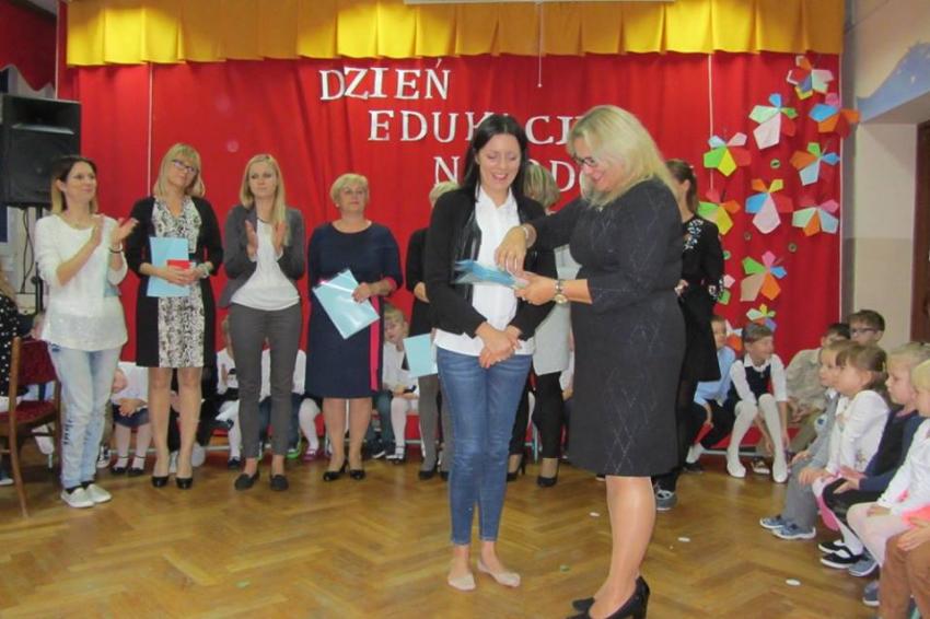Z tej okazji najstarsze przedszkolaki przygotowały autorskie, oryginalne wiersze o nauczycielach, oraz zaprezentowały przedstawienie pt. "Żuk". Były również życzenia, piękne piosenki i kwiaty. Niespodzianką był udział pana Sekretarza Gminy p.Mariusza Żukowskiego