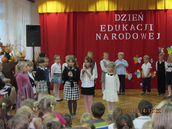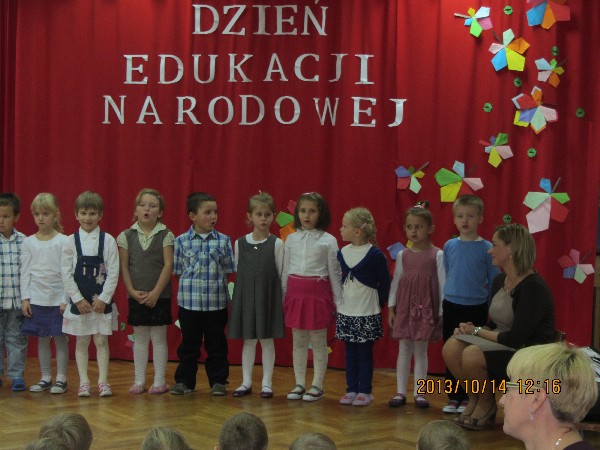 14 października odchodziliśmy w naszym przedszkolu uroczyście Dzień Edukacji Narodowej. Z tej okazji dzieci ze starszych grup przygotowali program artystyczny wyrażający podziękowania nauczycielom, pracownikom administracji i obsługi za cierpliwość, poświęcenie oraz trud w wychowaniu i nauczaniu.