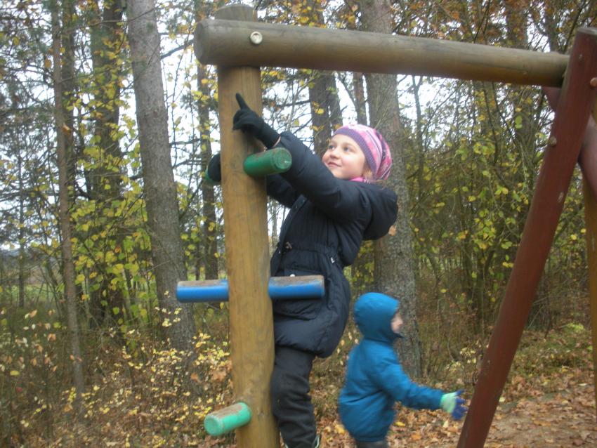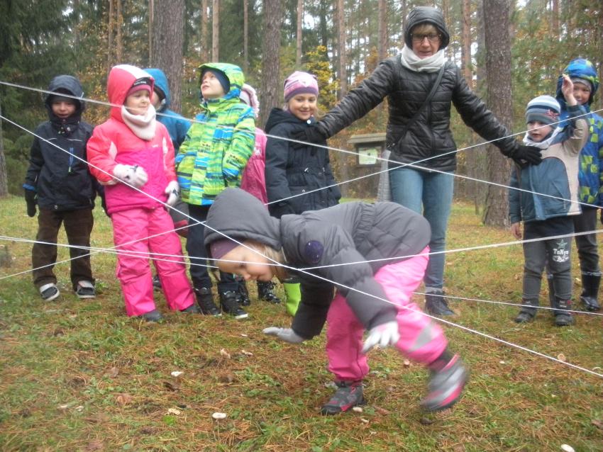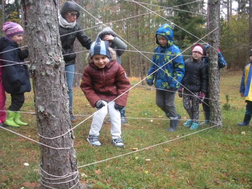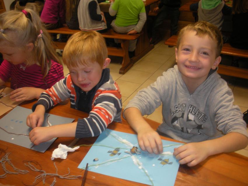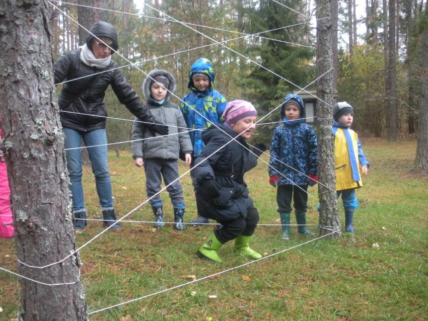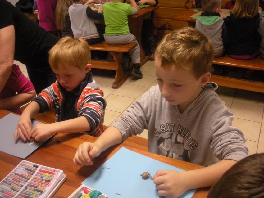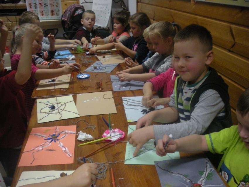 Tym razem dzieci zapoznały się ze ścieżką edukacyjną, gdzie dowiedziały się, jak zwierzęta leśne przygotowują się do snu. Gumisie "natknęły się" również na domek Baby Jagi i wielką sieć pająka! Po powrocie do siedziby Arboretum przeniosły swoje wrażenia na papier - tak powstały włóczkowe pajęczyny z żołędziowymi pająkami!
