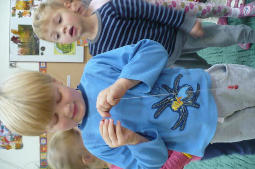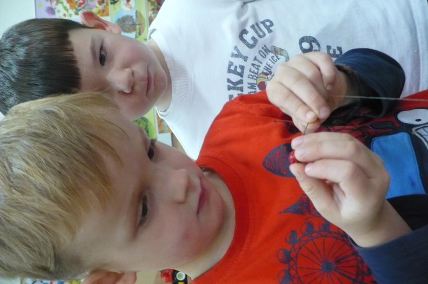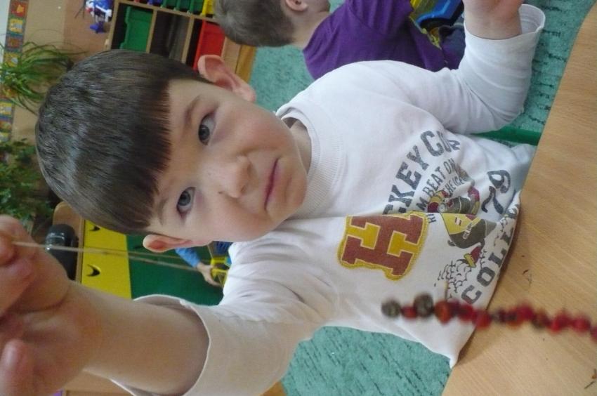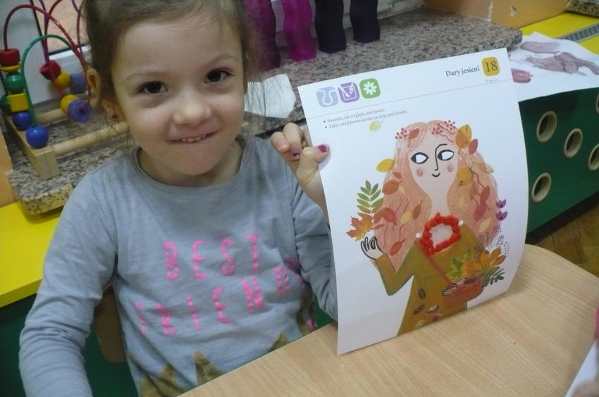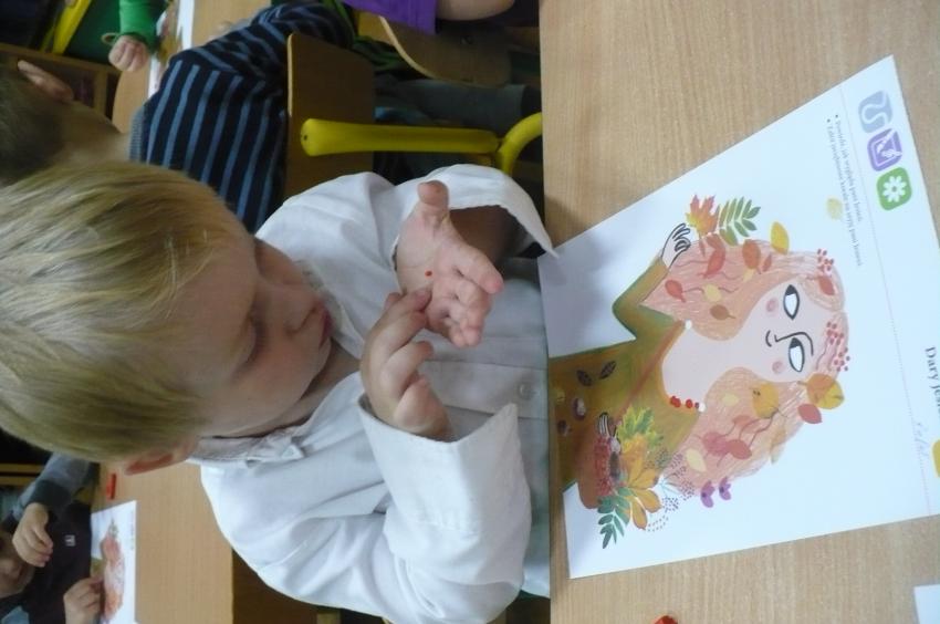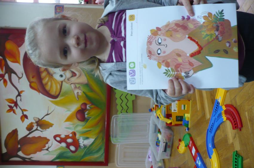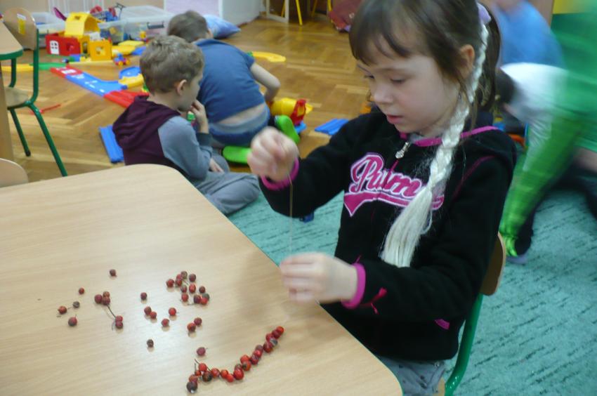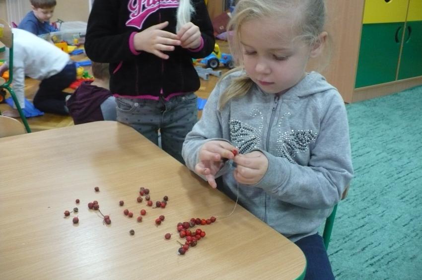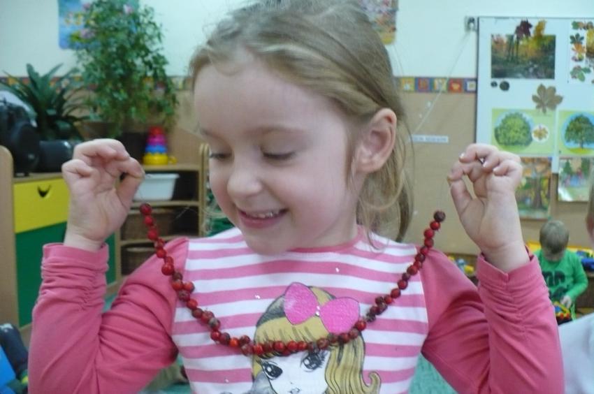 Zgodnie ze słowami piosenki „Idzie lasem Pani Jesień” Muminki zadbały, by na szyi jesiennej damy nie zabrakło czerwonych korali.