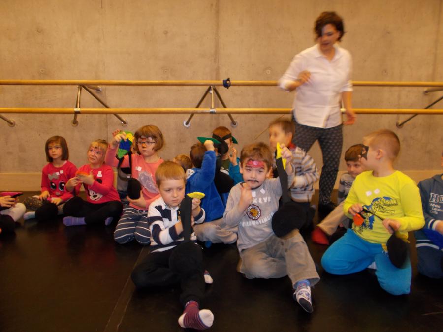 Smerfy na warsztatach pt.: ,,Drzwi do świata muzyki" w Operze i Filharmonii Podlaskiej w Białymstoku