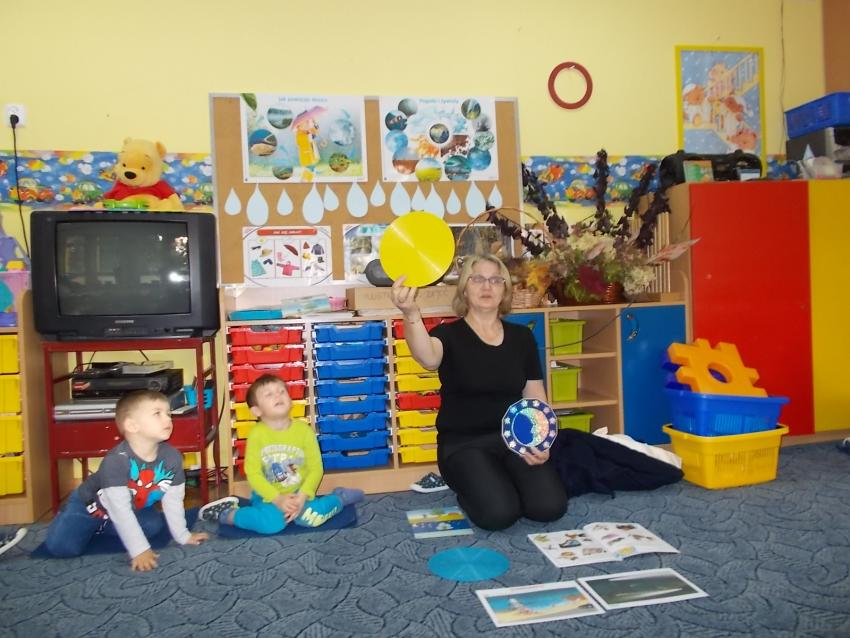 Krasnoludki poznają znaczenia wyrazów dzień, noc.