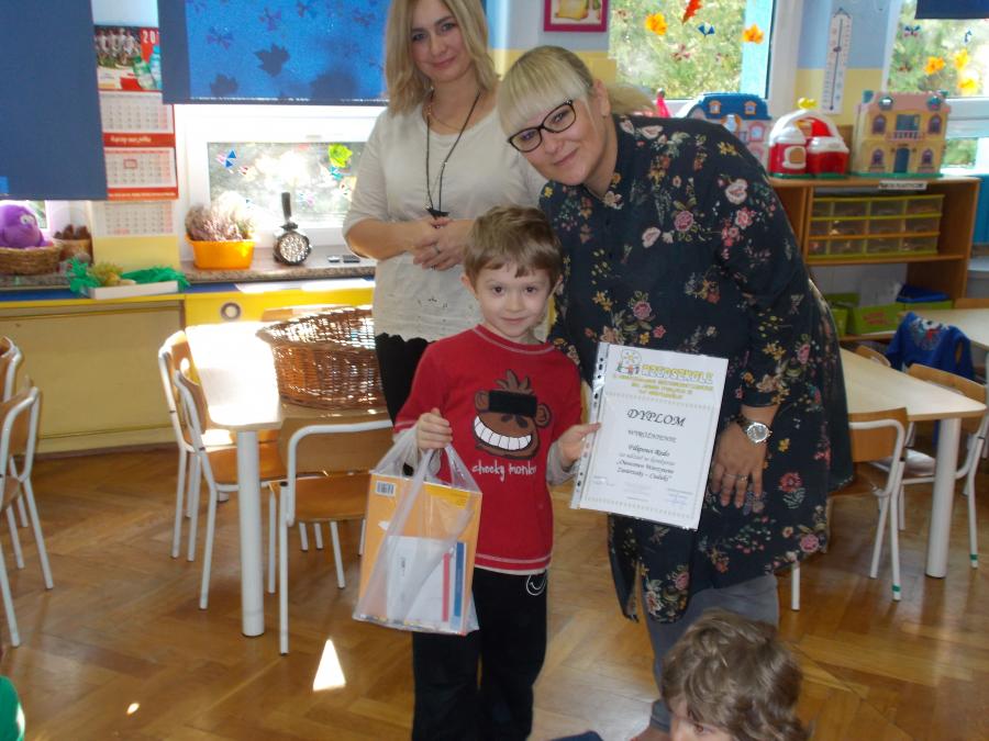 Smerfy otrzymały nagrody za udział w konkursie plastycznym ,,Warzywno - owocowe zwierzaki - cudaki
