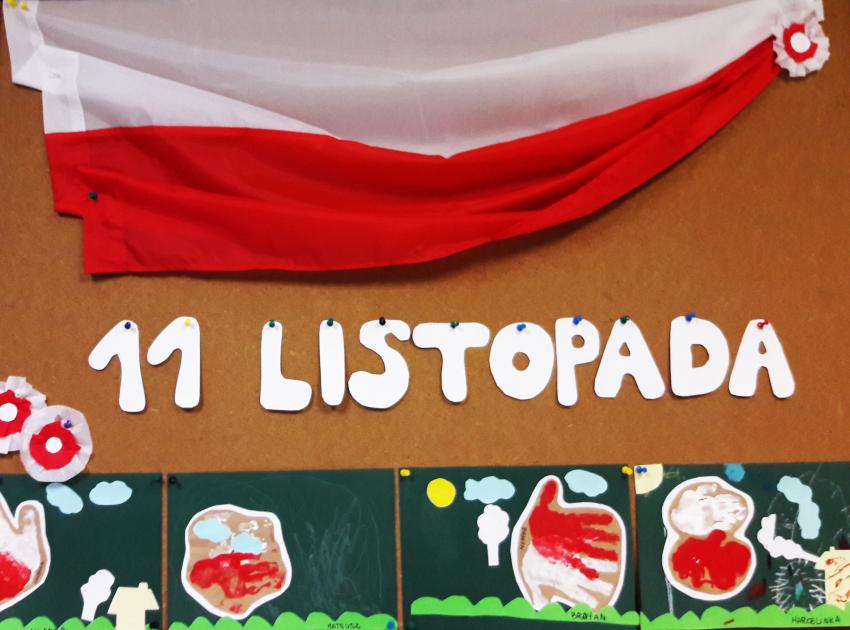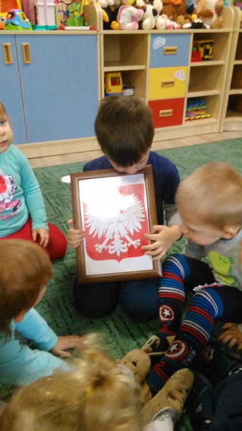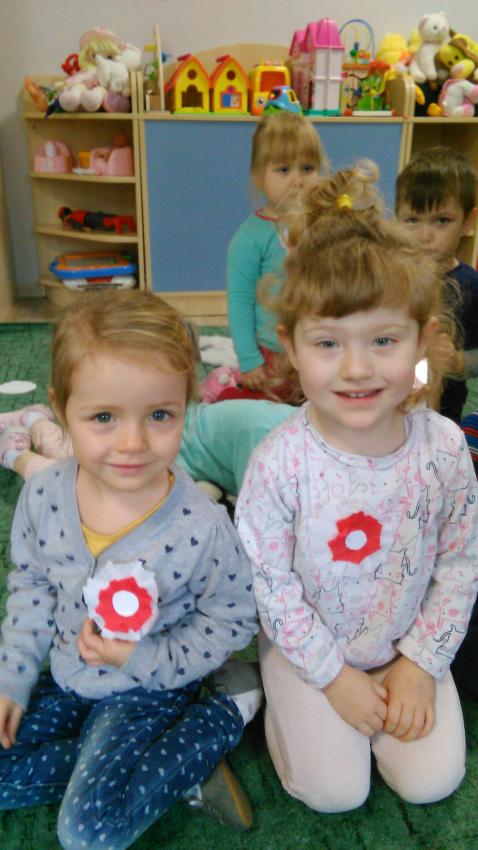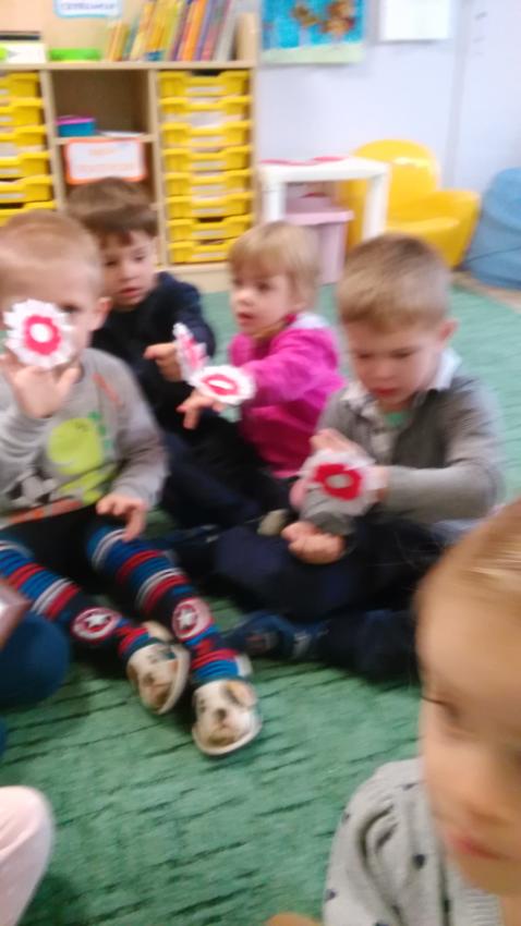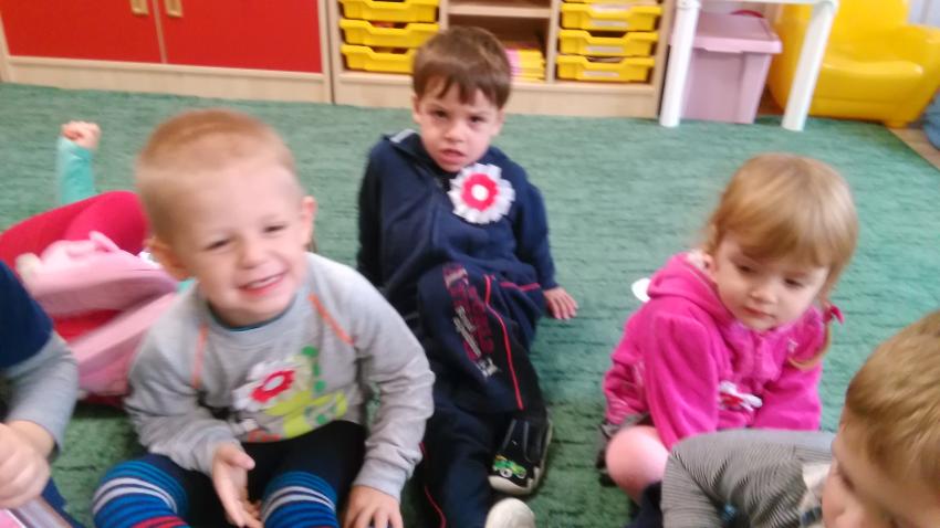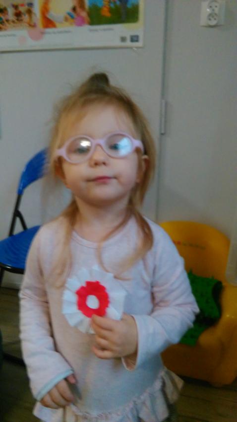 Z okazji Święta Niepodległości Kaczuszki przystroiły się we własnoręcznie zrobione biało-czerwone kotyliony, z bliska obejrzały nasze Godło oraz wykonały pracę plastyczną na konkurs "Za co kocham Polskę?".