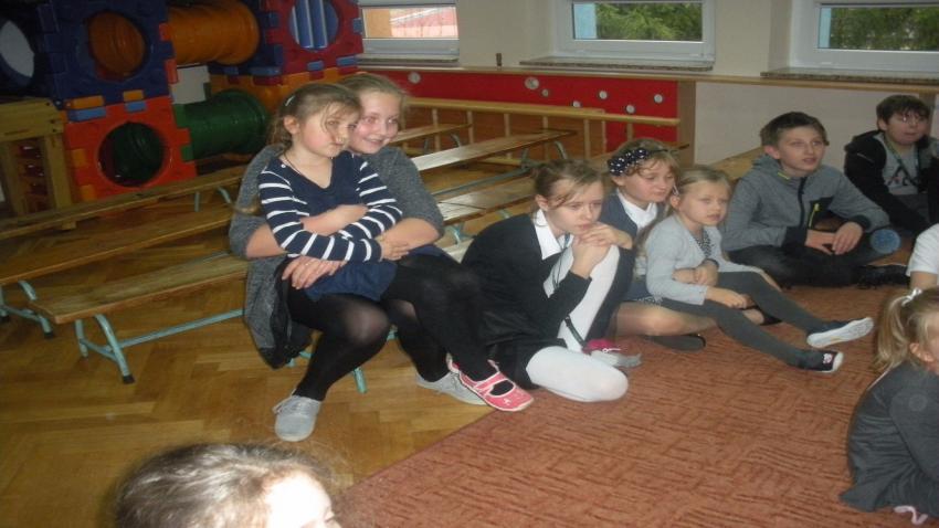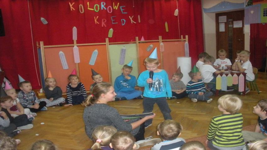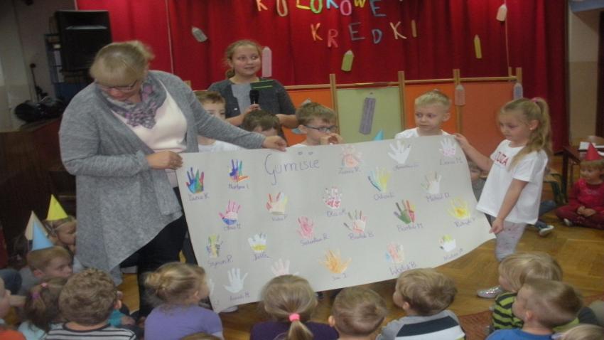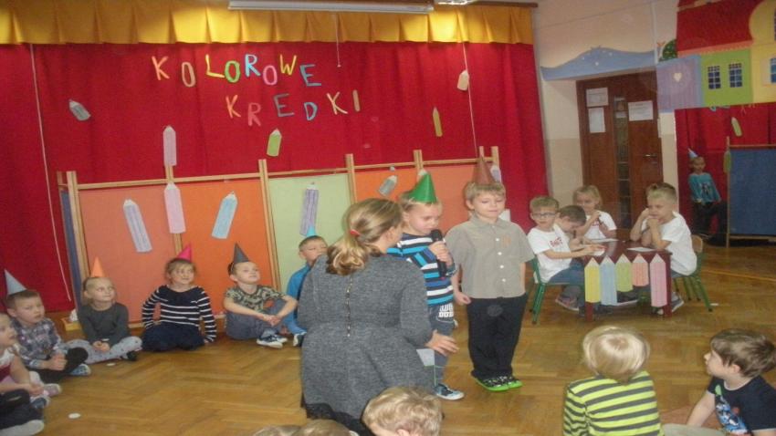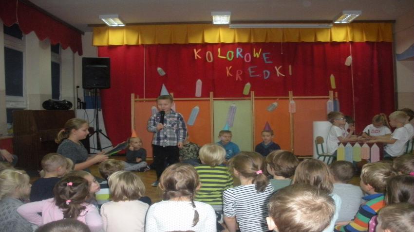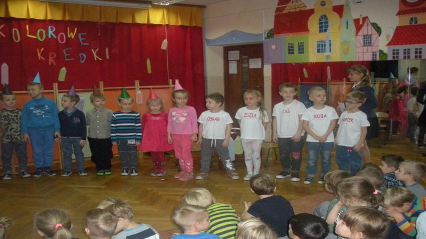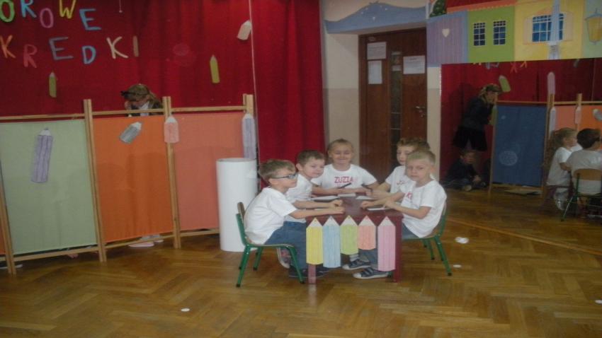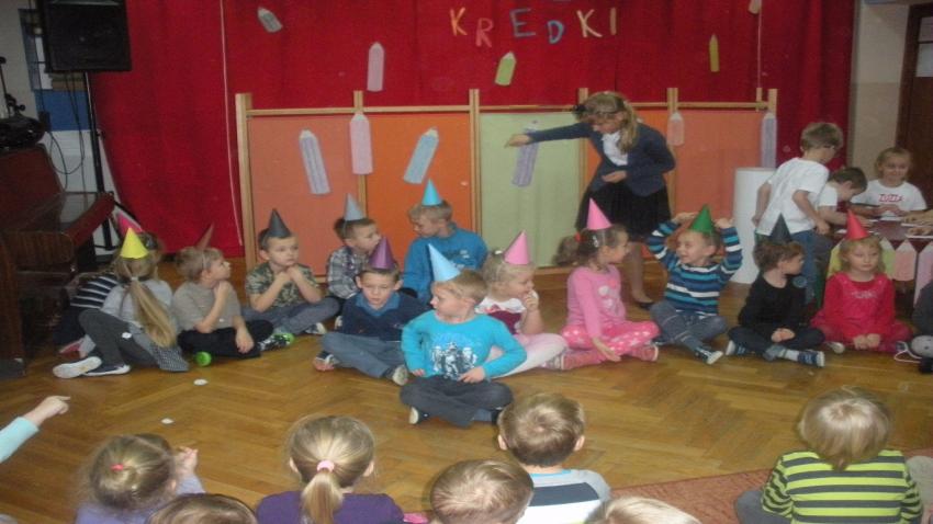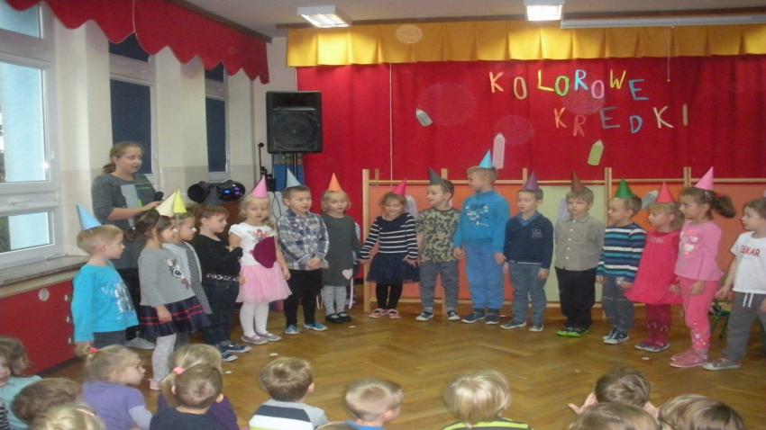Dzisiaj w naszym przedszkolu wolontariuszki z klasy VB - Ania i Zuzia zorganizowały całej społeczności przedszkolnej niespodziankę. Dziewczęta przygotowały dzieci z grupy Gumisie do występu i zaprezentowały inscenizację pt. "Zmartwienie kredek". To pierwsze tego typu przedstawienie w ramach współpracy przedszkola z pobliską szkołą podstawową.