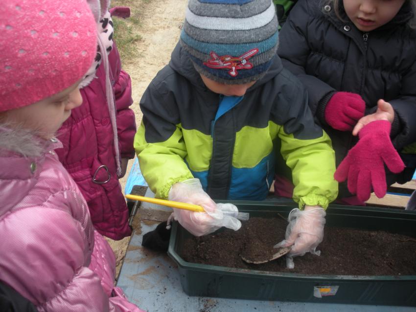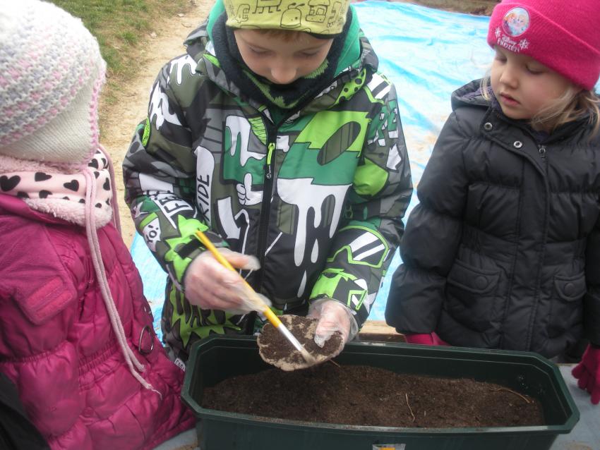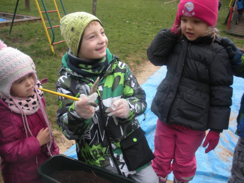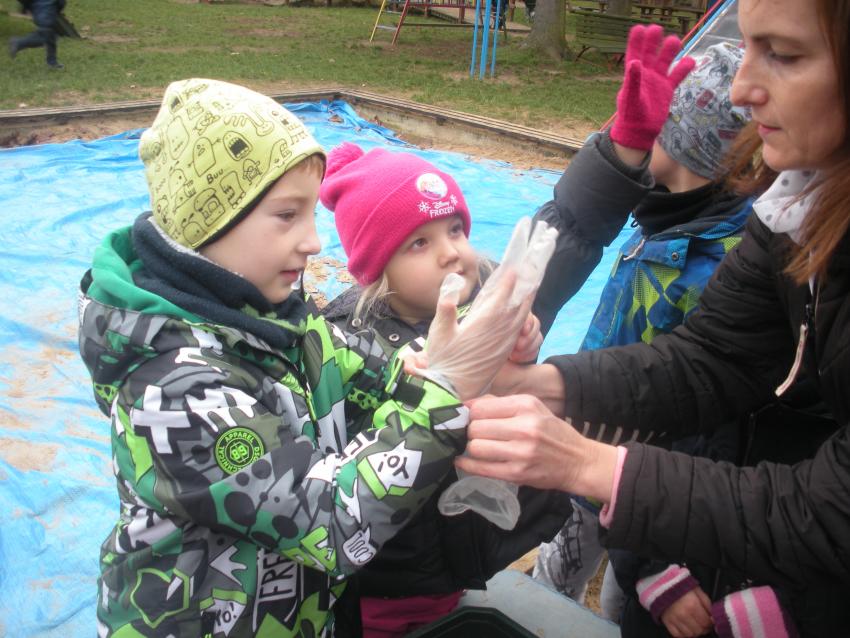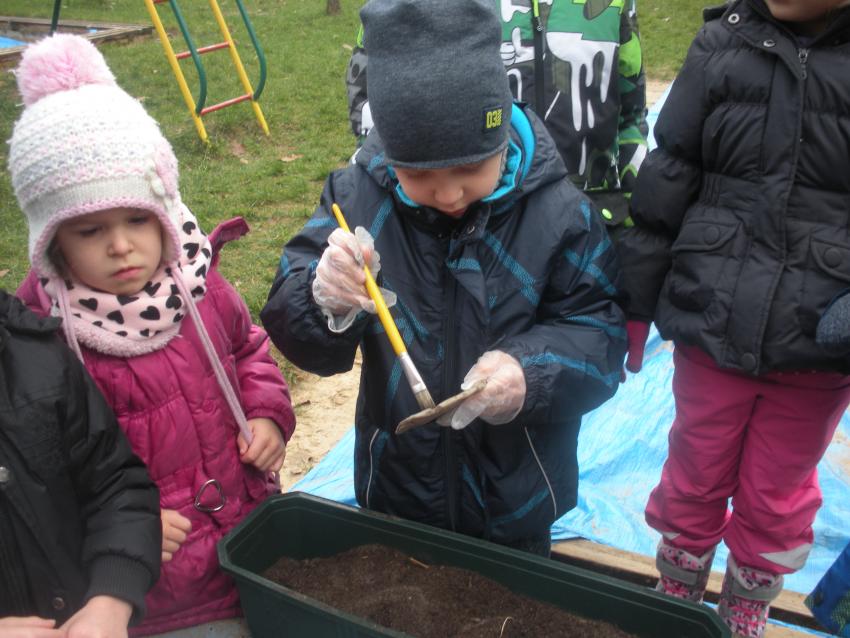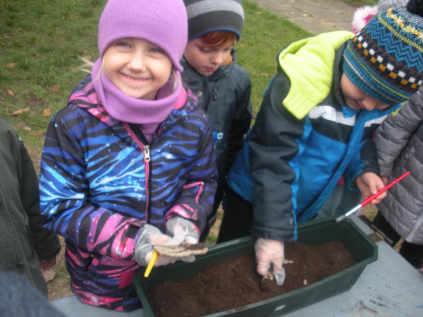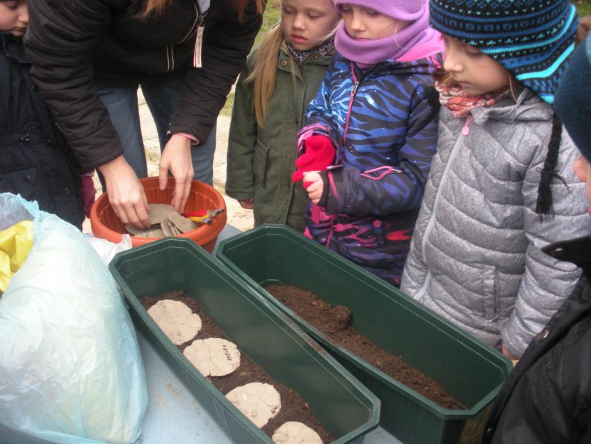 Dzieci wcieliły się w role archeologów i odkrywały w ziemi wykonane wcześniej skamieliny. Dzięki tego rodzaju zabawie, Gumisie zapoznały się z niektórymi zasadami pracy wykopaliskowej.