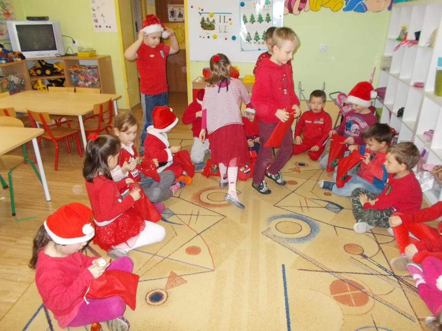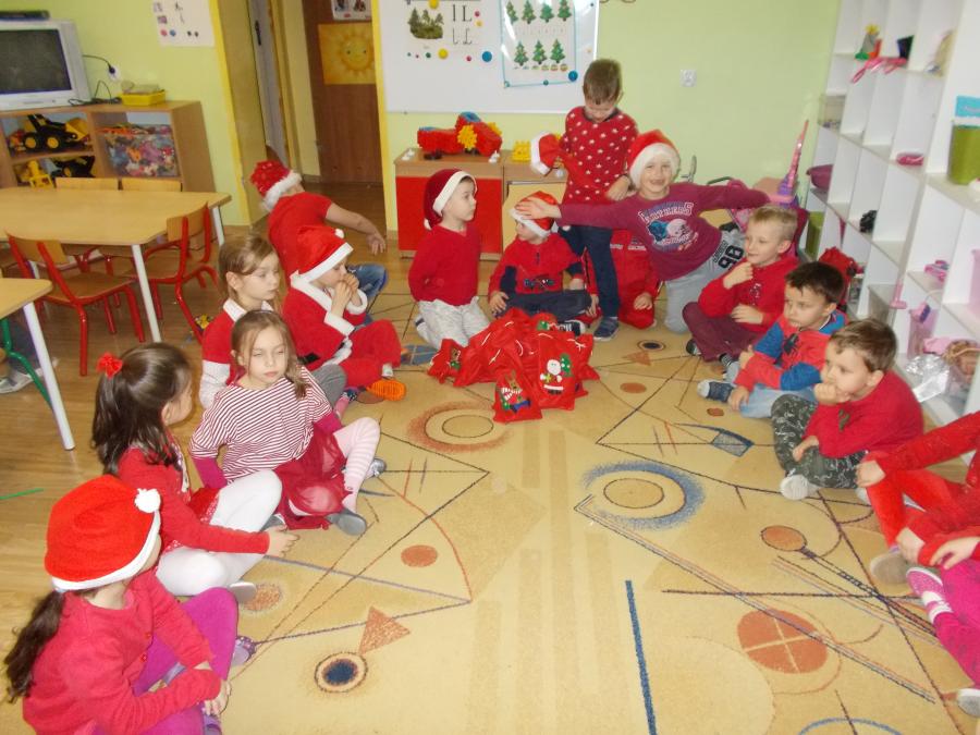 Elfy w dniu imienin Mikołaja uczestniczyły we wspólnej zabawie ze Św. Mikołajem. Ogromnym zaskoczeniem były dodatkowe prezenty czekające na nich w sali. Dziękujemy Św. Mikołaju za wspaniałą niespodziankę!!!