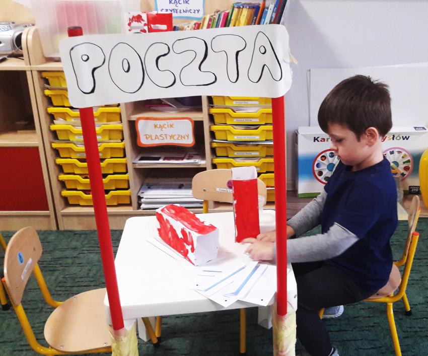 Kaczuszki wybrały się na wycieczkę na pocztę. Zainspirowane poznały pracę listonosza oraz zabrały się do pakowania paczek oraz listów. Wykonały również własne skrzynki pocztowe które posłużyły do zabaw w domu.