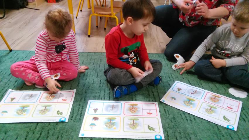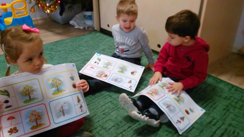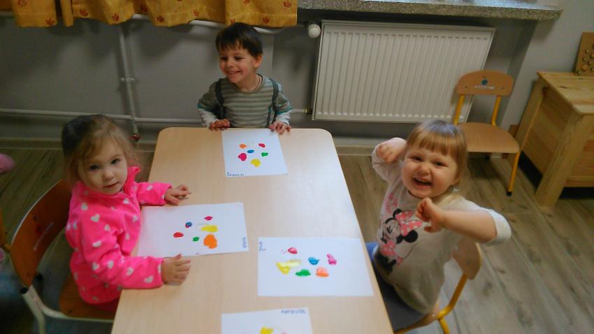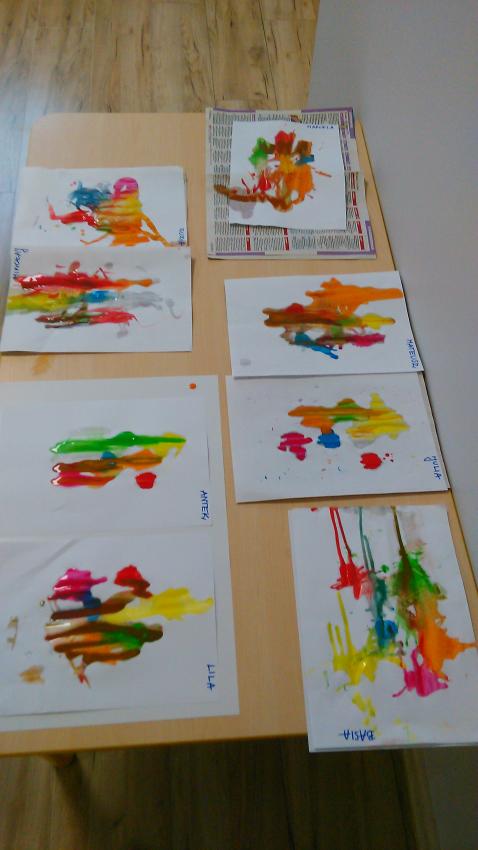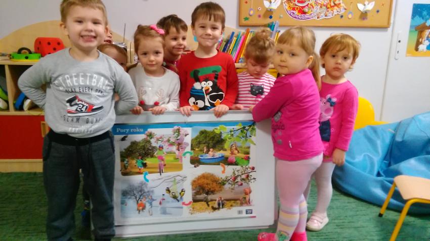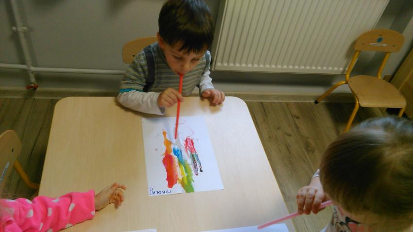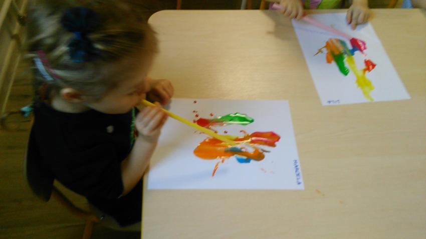 W tym tygodniu tematem przewodnim w grupie Kaczuszek były pory roku. Kaczuszki poznały kolejność następowania pór roku, symptomy o nich świadczące.Dmuchając przez słomki, uwieczniły na swoich pracach wietrzyk, które zimą mocno wieje.