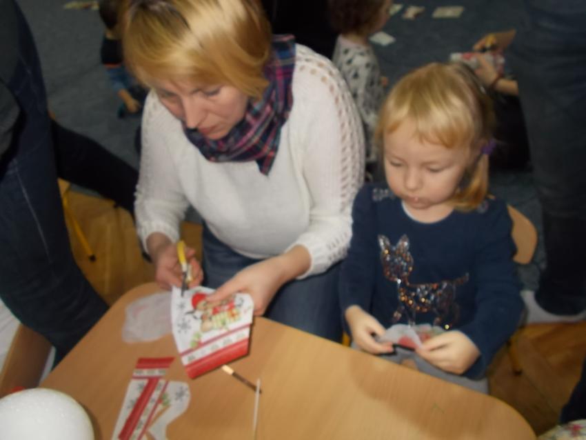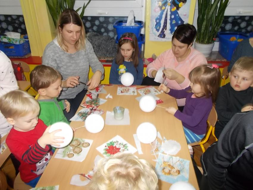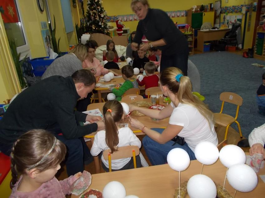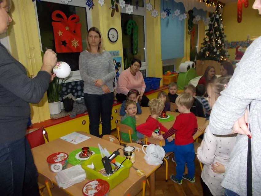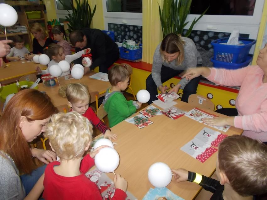 Przedświąteczne warsztaty plastyczne z rodzicami w grupie Krasnoludków