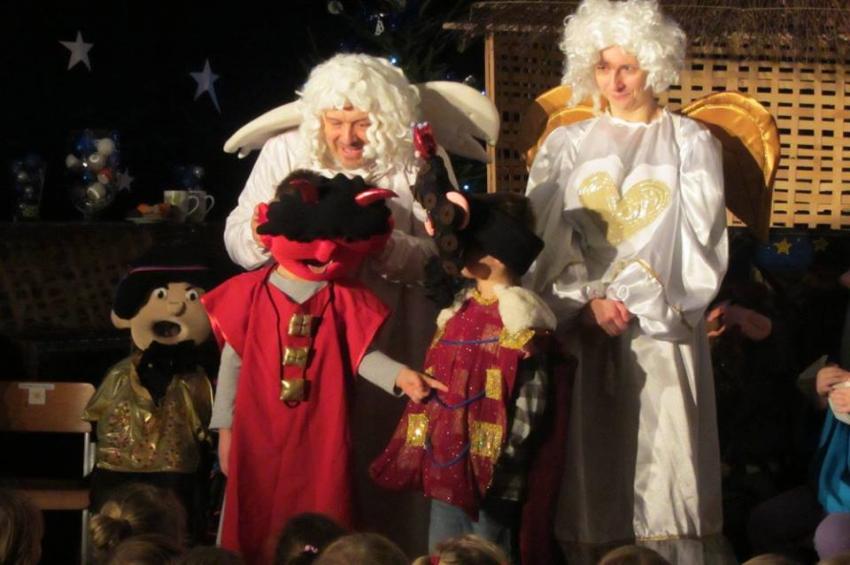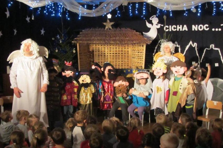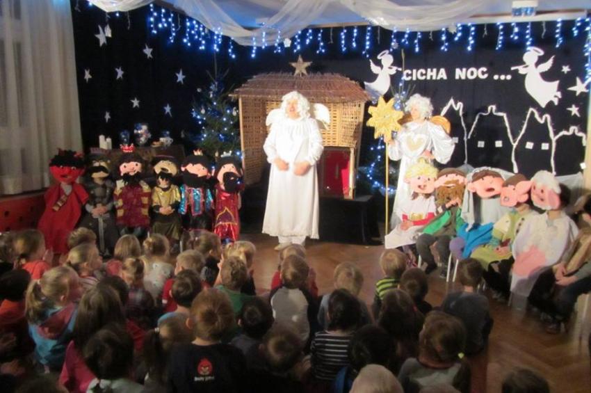 Dnia 19.12.2017r odbyło się w naszym przedszkolu przedstawienie teatralne teatru " Pod Orzełkiem" pt." Kolędnicy".