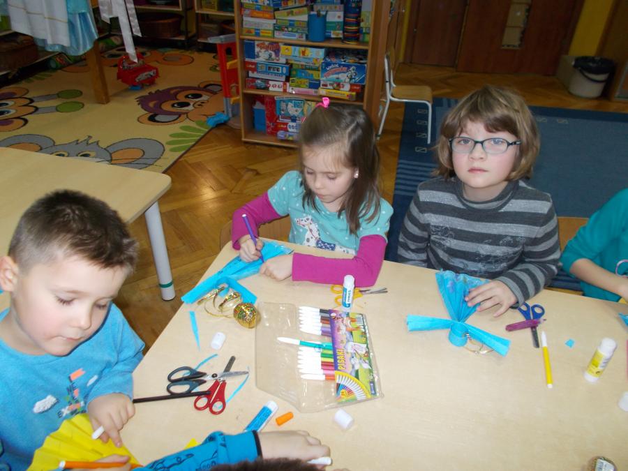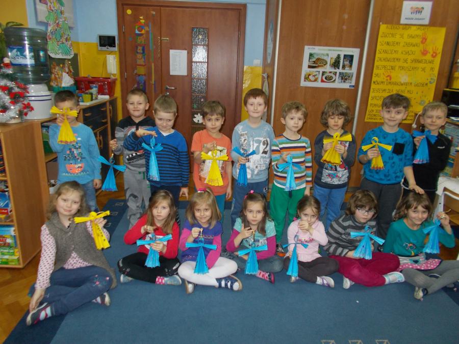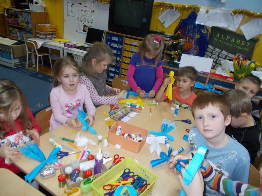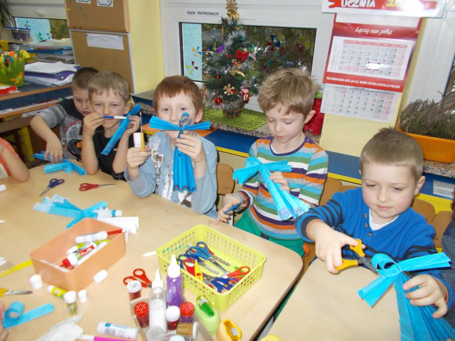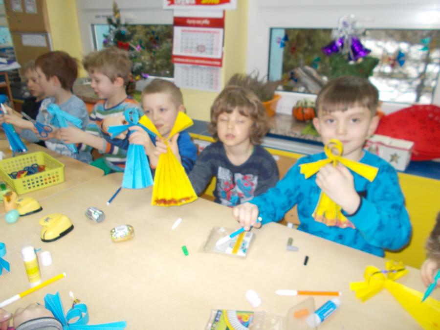 Smerfy wykonują ozdoby choinkowe ,,Aniołki"