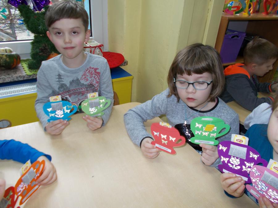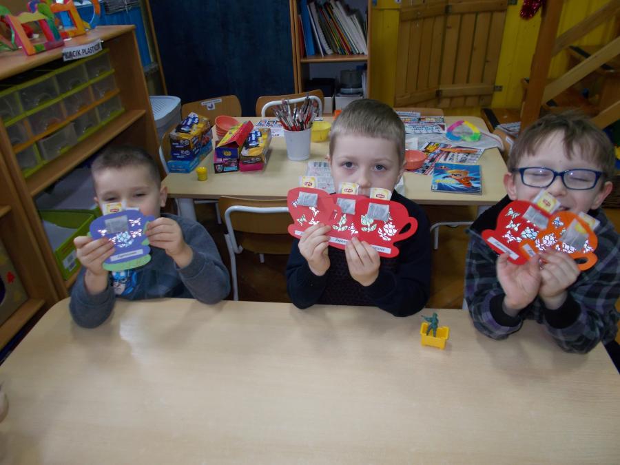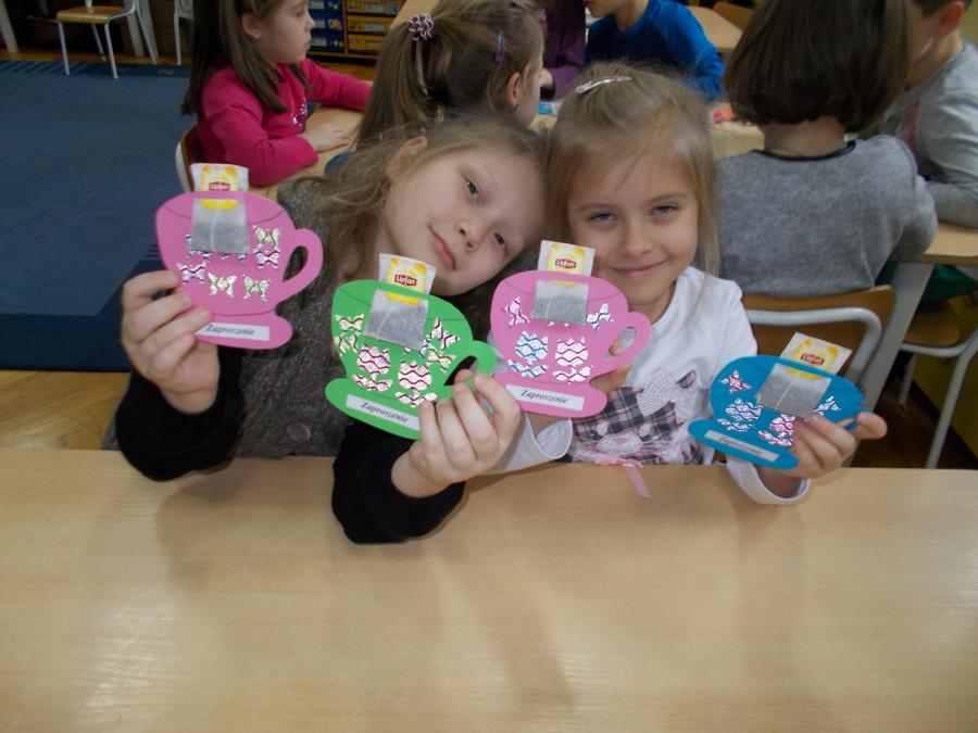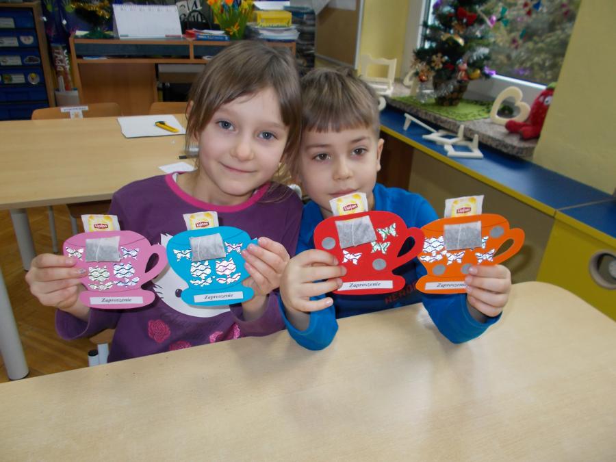 Smerfy wykonują zaproszenia na Uroczystość z okazji Dnia Babci i Dziadka