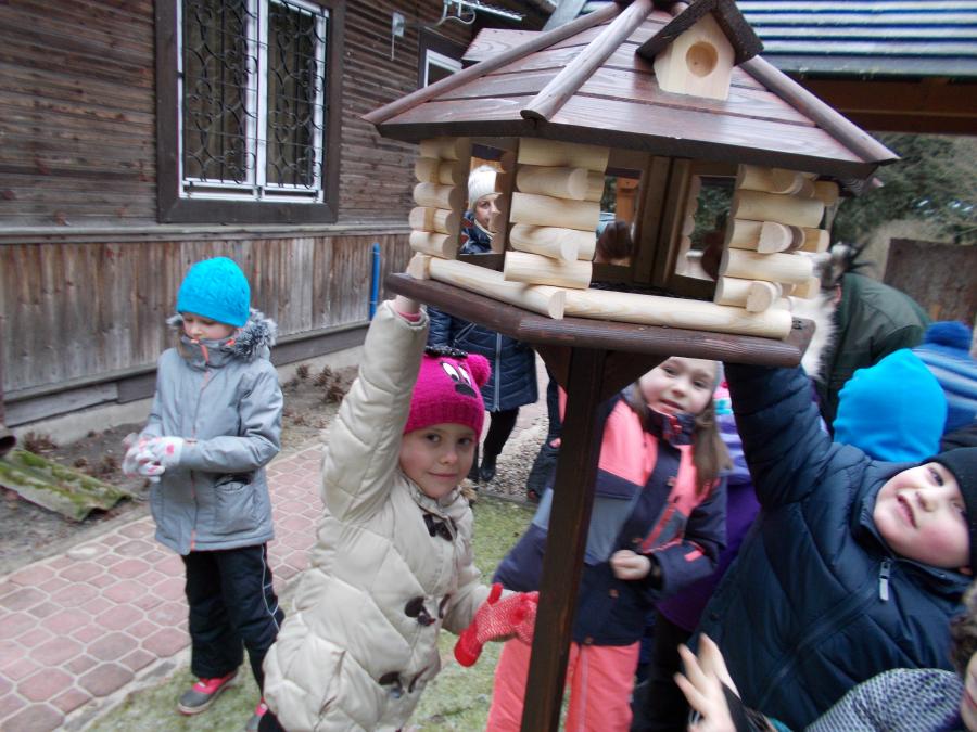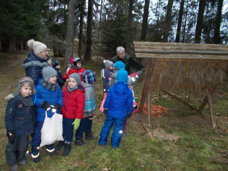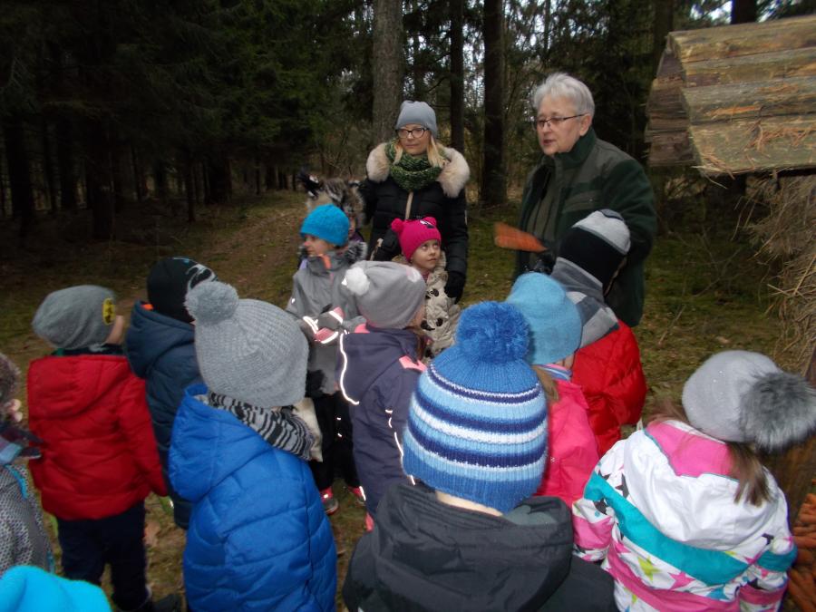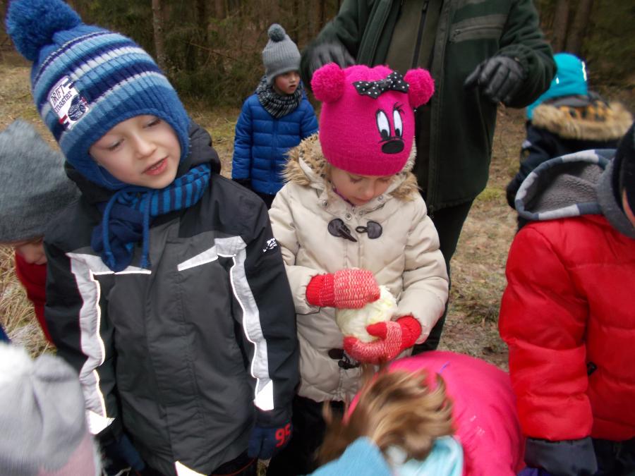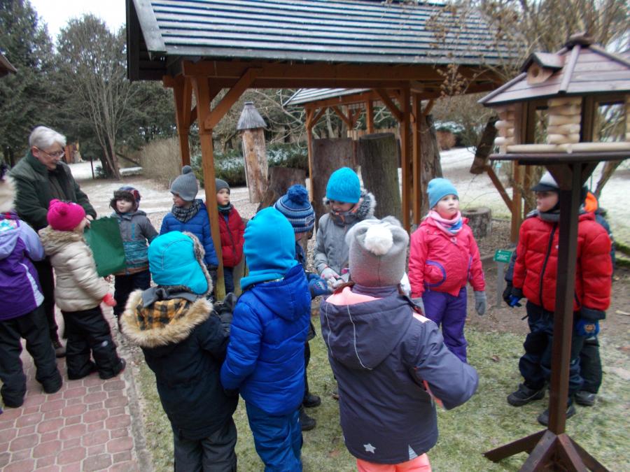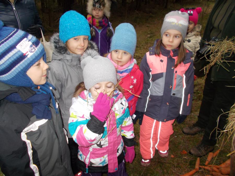 Tematem spotkania było ,,Dokarmnianie ptaków i zwierząt zimą". Przedszkolaki pamiętają o głodnych zwierzętach i ptakach zimą, zawiozły do lasu warzywa i owoce - marchewki, buraki, kapustę, jabłka i siano. Koło paśnika położyły pokarm zwierzętom, aby mogły się posilić. Wykonały pracę plastyczno - techniczną ,,Karmnik". Podziękowania składamy Rodzicom, którzy przekazali warzywa i owoce głodnym zwierzętom leśnym.
