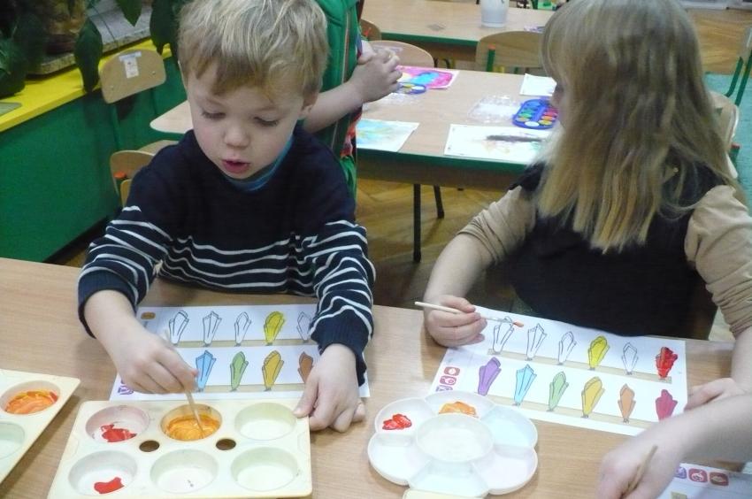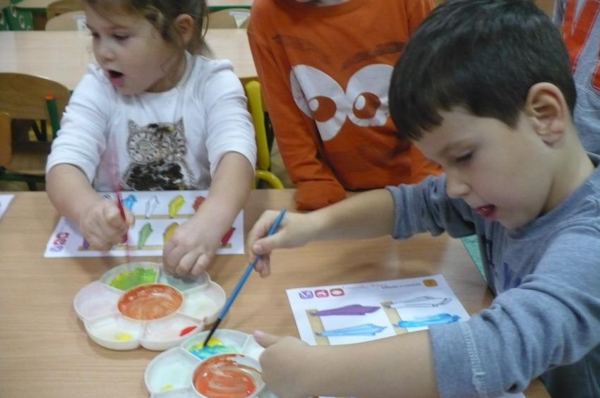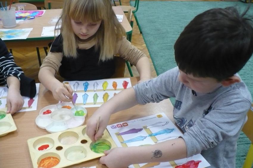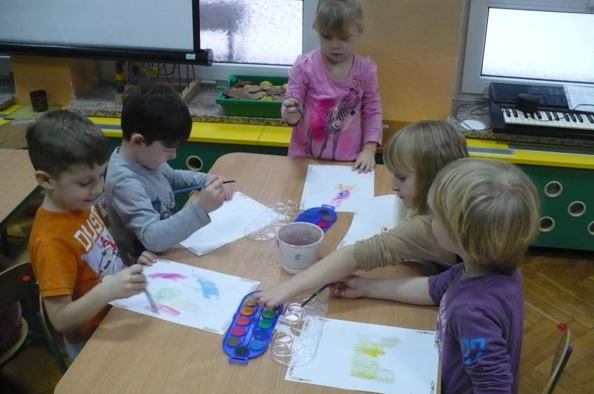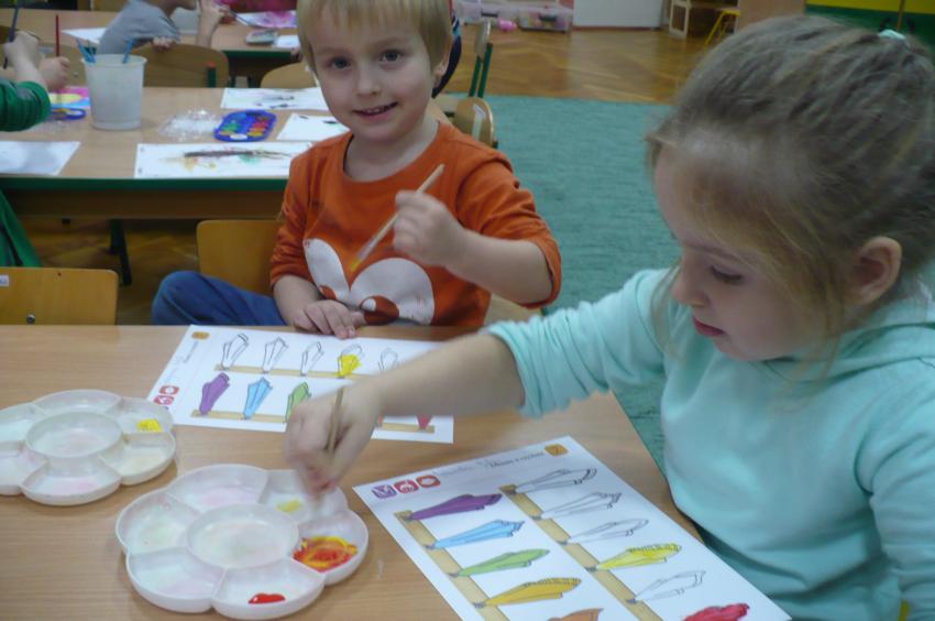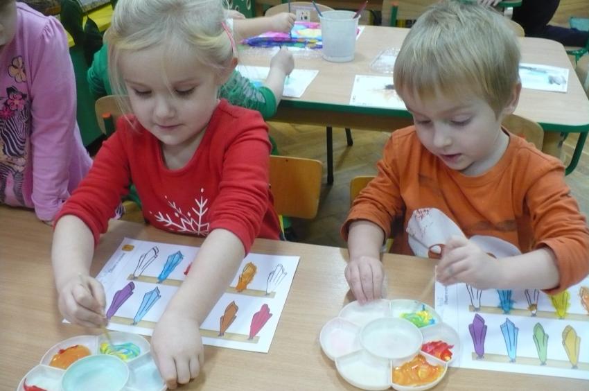 Poszukiwanie kolorów poprzez tworzenie ich z kolorów podstawowych miało na celu nie tylko wzbogacenie wiedzy i umiejętności dzieci, ale również było inspiracją do zaprojektowania kolorowych ręczników.