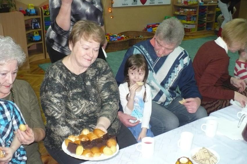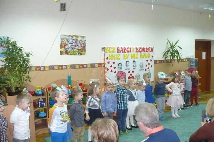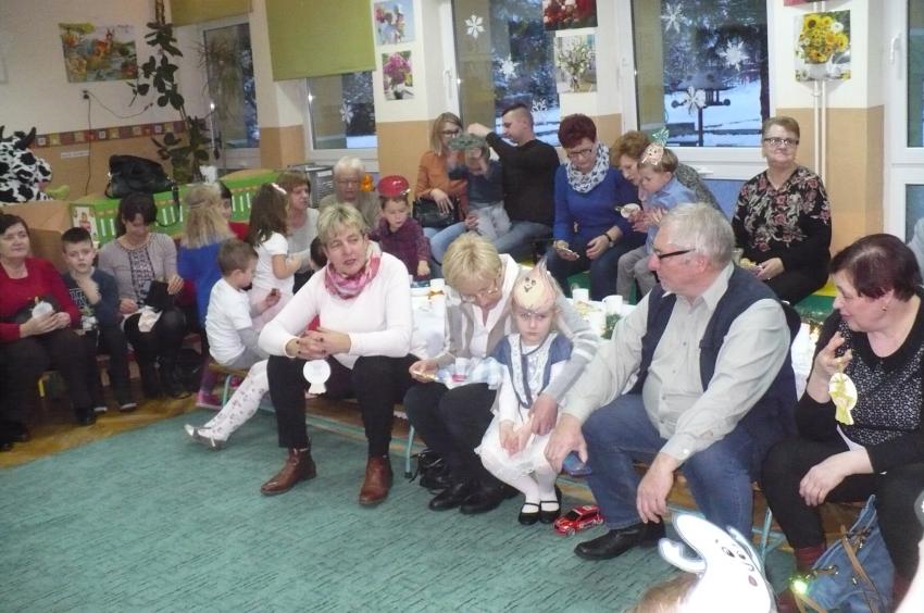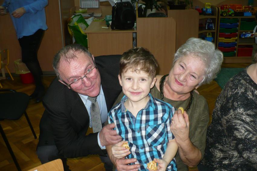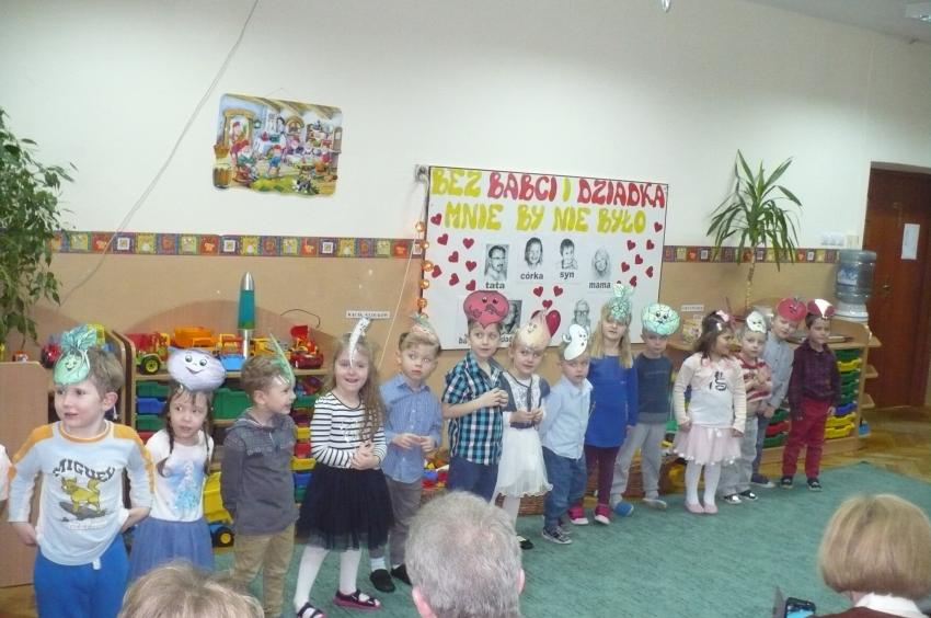 Przygotowania do Dnia Babci i Dziadka rozpoczęły się już dużo wcześniej. Zaczęliśmy od wykonania prezentów – aniołków z masy solnej. Następnie przygotowaliśmy „warzywno-witaminowy” występ, za który otrzymaliśmy ogromne brawa. Kochane Babunie i Dziadziusiowie to nasza najwierniejsza publiczność.