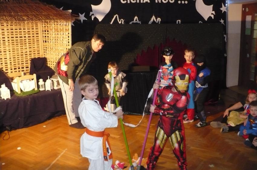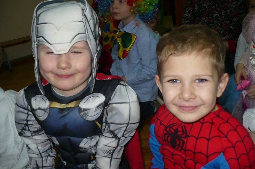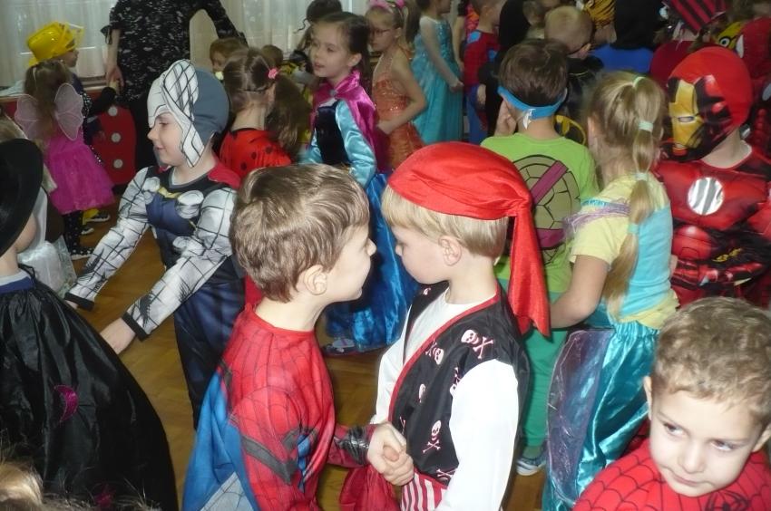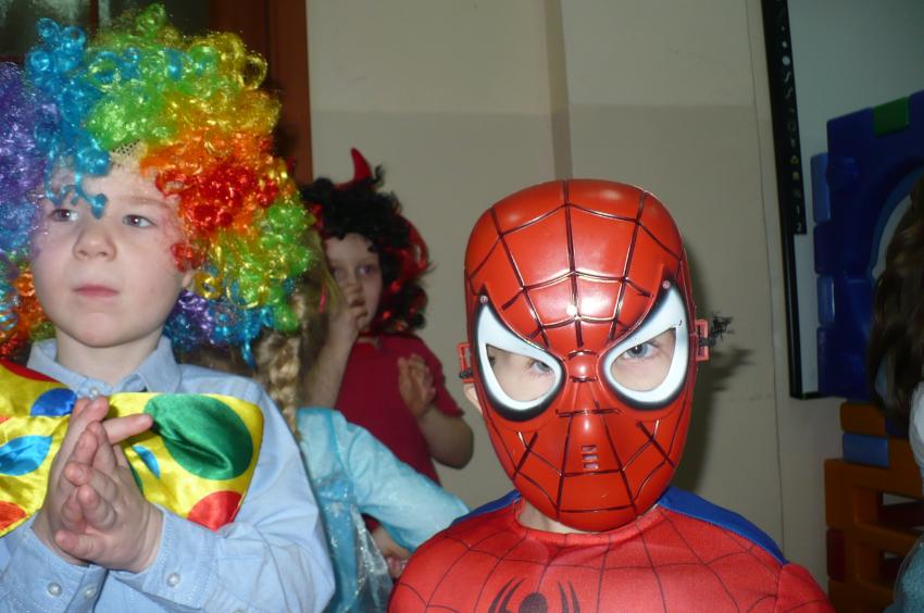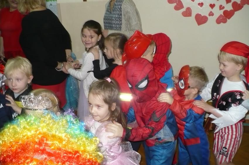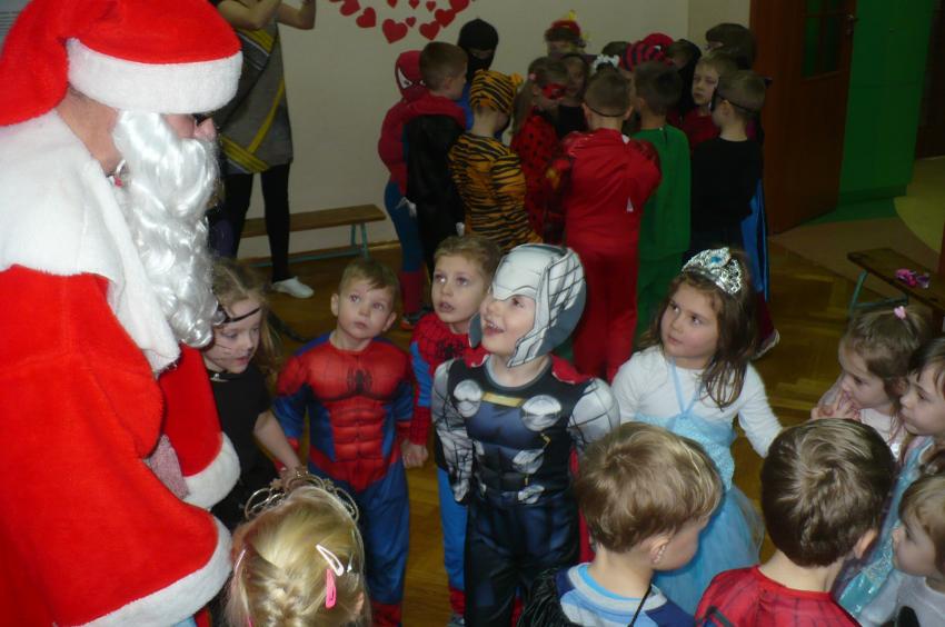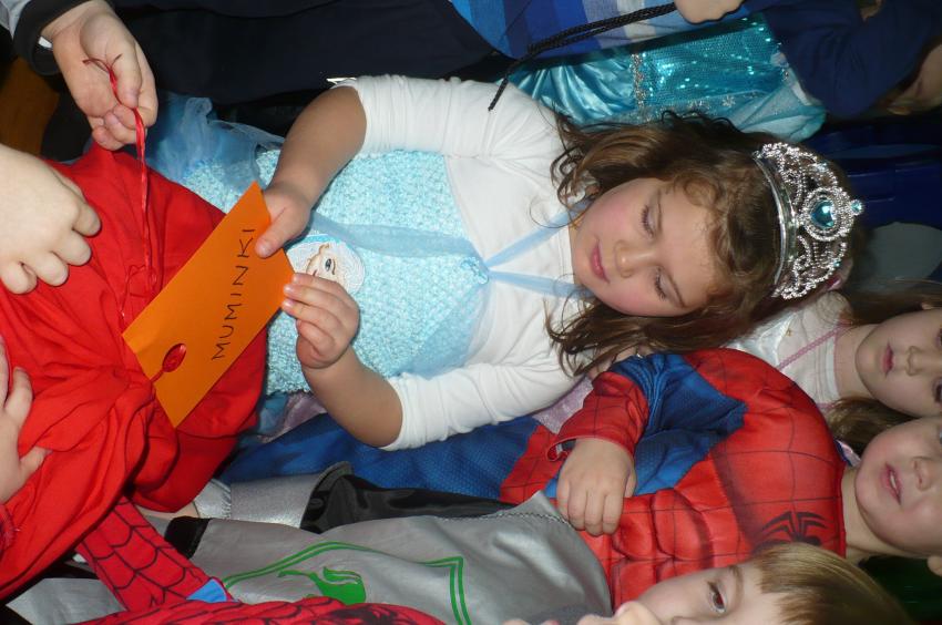 Największą popularnością wśród Muminków cieszyły się postacie: Elza i Spiderman. Ale niezależnie od przebrania zabawa była przednia, tym bardziej że odwiedził nas św. Mikołaj z workiem prezentów.