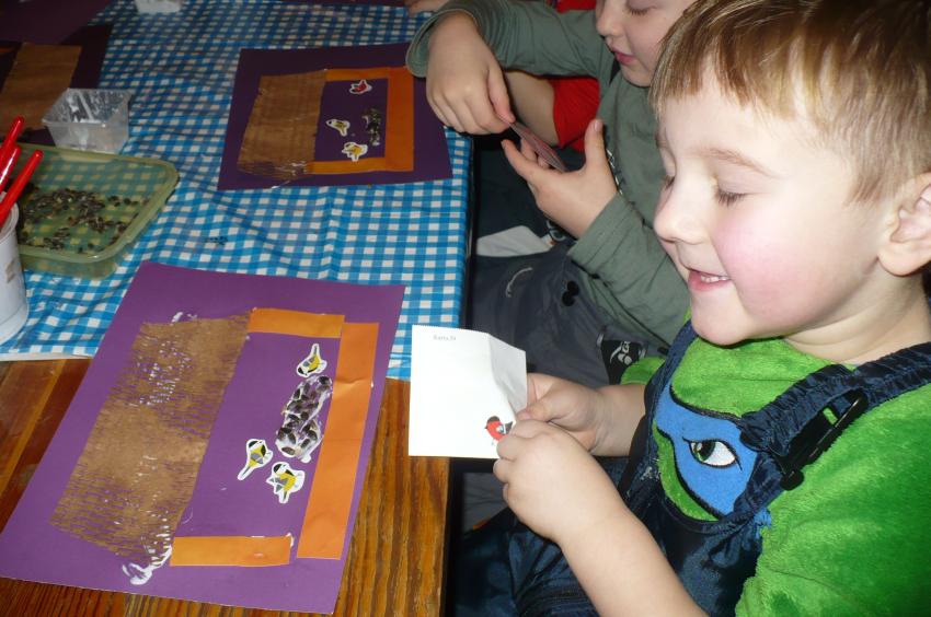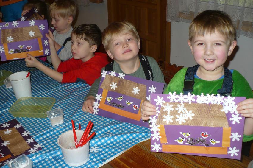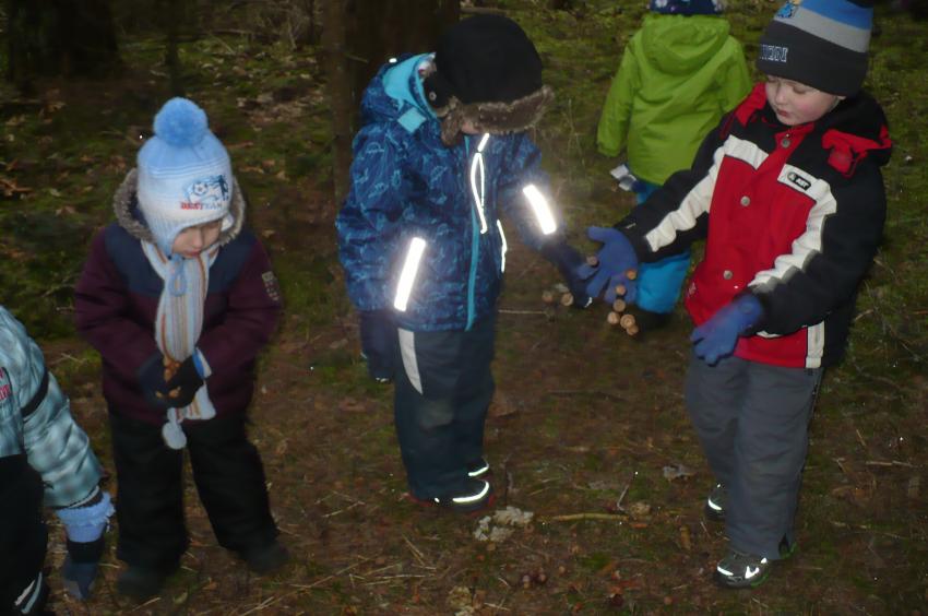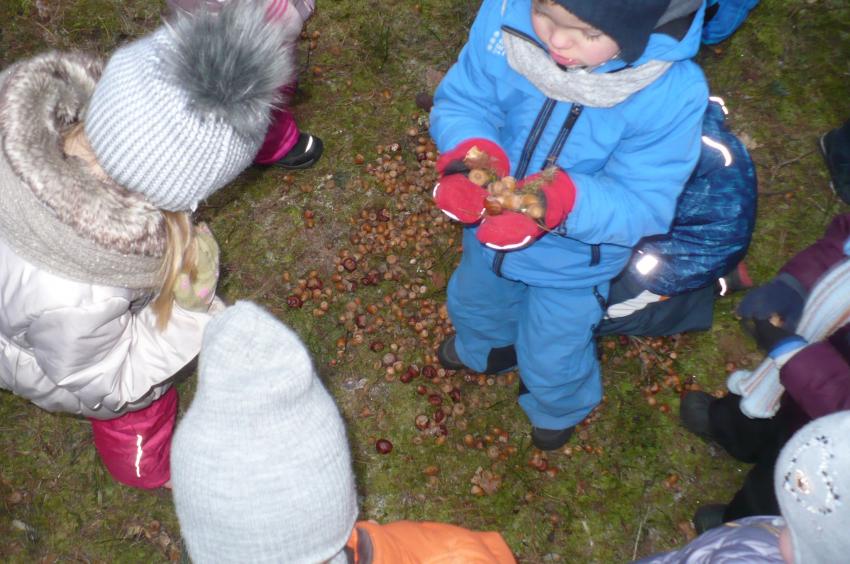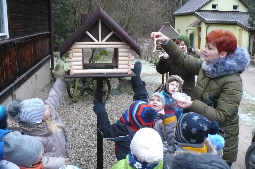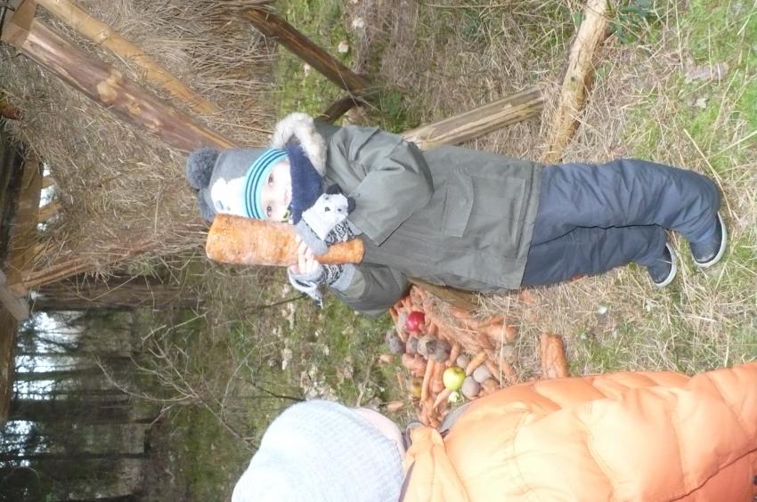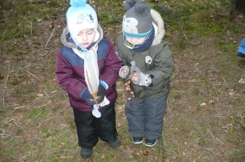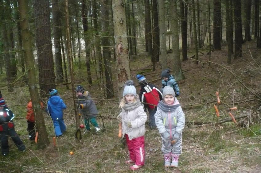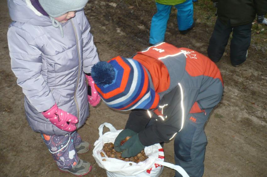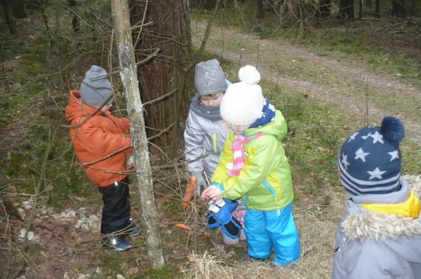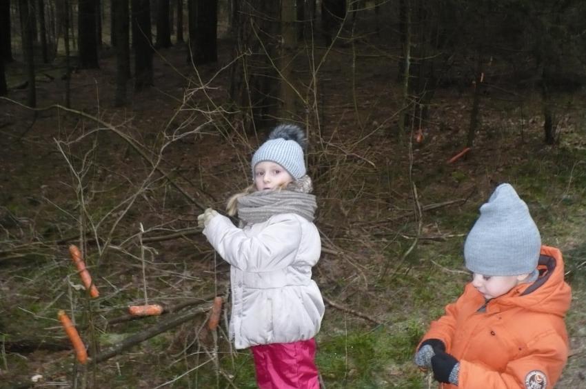 Podczas kolejnej wizyty w Arboretum w Kopnej Górze Muminki urządziły prawdziwą ucztę dla leśnych zwierząt. Na drzewach porozwieszały marchewki i jabłka, na ściółce rozsypały żołędzie, a do karmnika włożyły słoninkę i nasypały nasionek. Szkoda tylko, że nie miały okazji zobaczyć, jak zwierzęta „ucztują”.
