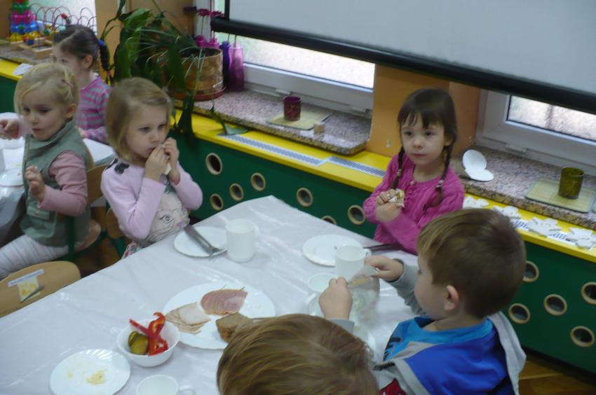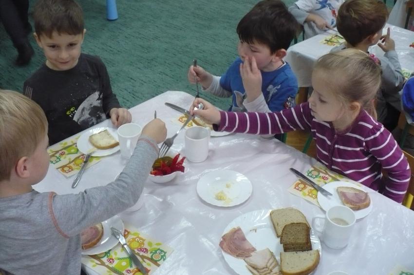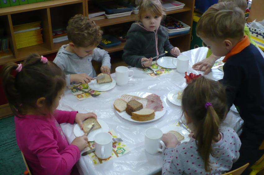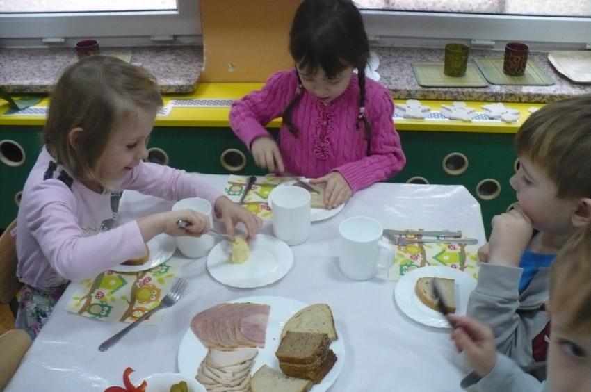 W ramach doskonalenia samodzielności Muminki stanęły przed trudnym zadaniem – przygotowaniem śniadania. Samodzielnie musiały nakryć do stołu i zrobić kanapki. Okazało się, że własnoręcznie przygotowane śniadanie smakowało nadzyczaj dobrze. Nawet „Tadki – niejadki” zjadły o wiele więcej niż zazwyczaj. Może warto w domu pozwolić na samodzielność przy stole, by nie martwić się zjedzenie całego posiłku.