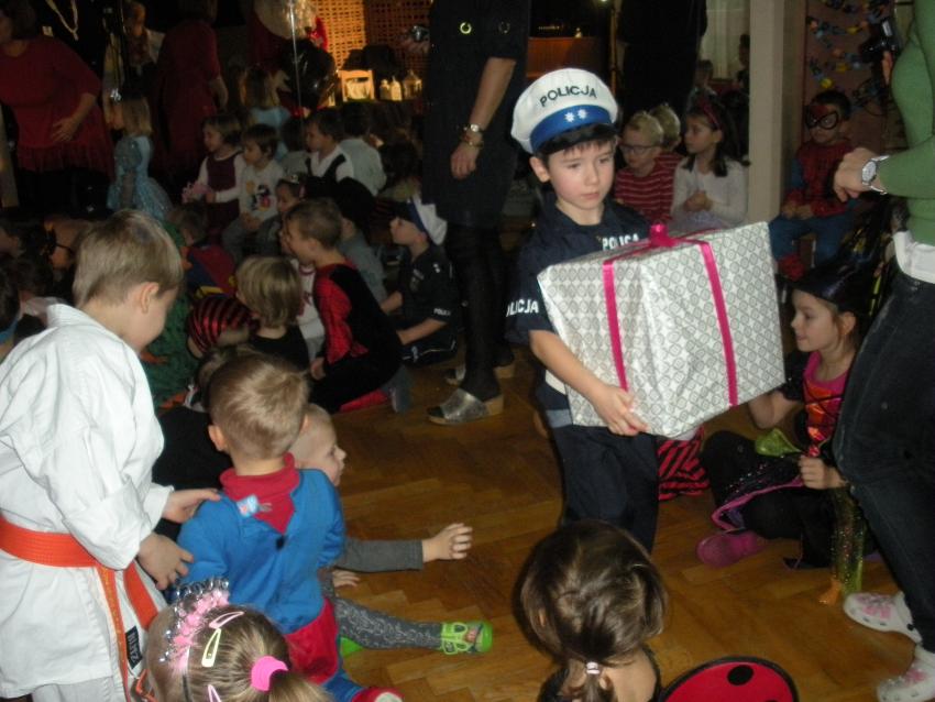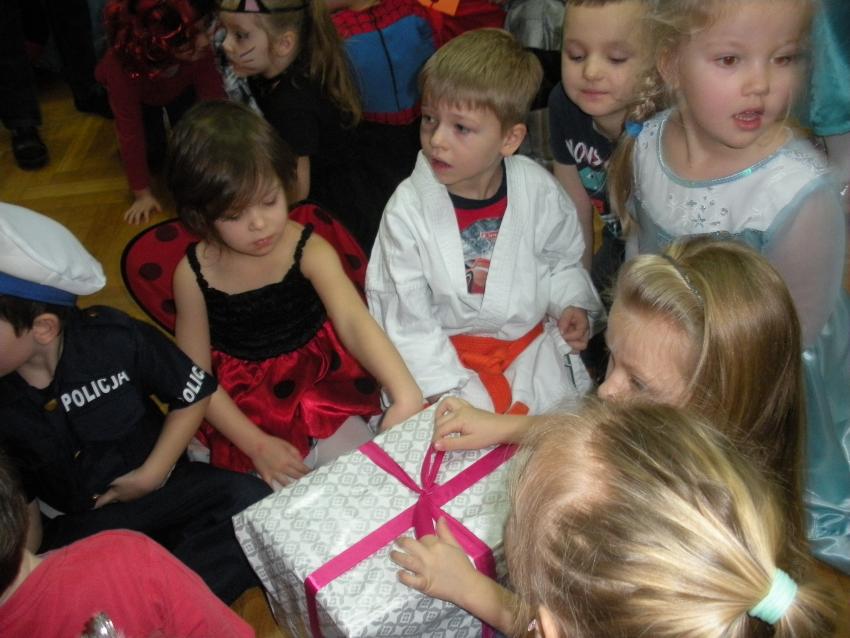 Gumisie chętnie prezentowały swoje kostiumy, cieszyły się wspólną zabawą, radośnie przeżywały wręczenie prezentu grupie od św. Mikołaja.