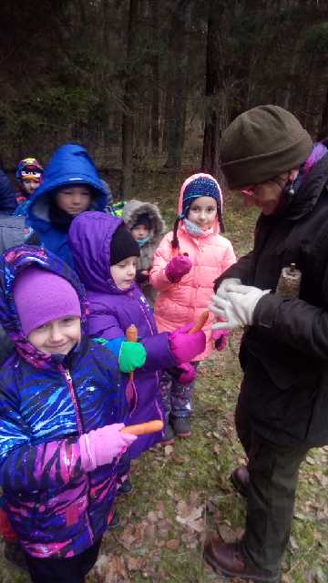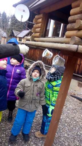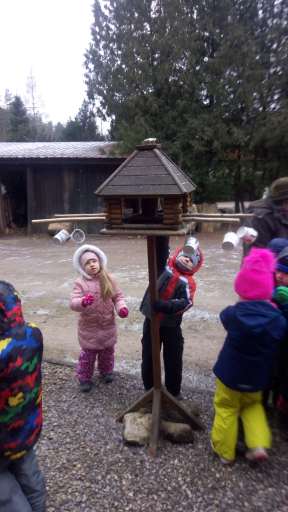 Gumisie tym razem dokarmiały leśne zwierzęta i pamiętały też o ptakach. Następnie wykonały pracę plastyczną pt. "Dokarmiamy ptaki".