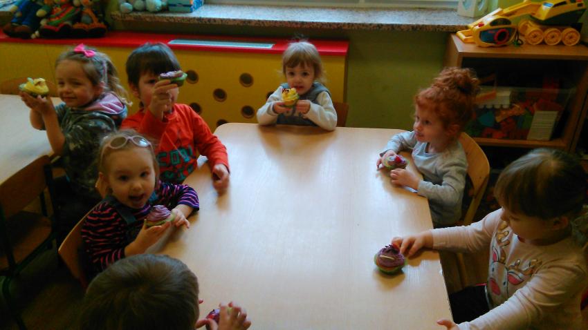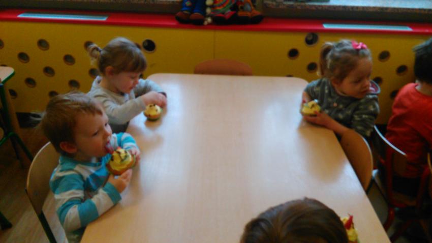 W drugim tygodniu ferii Kaczuszki gościły w sali Elfów. Taka nowość dla naszych maluszków, to było wielkie przeżycie. Kaczuszki chętnie bawiły się nowymi zabawkami. Na zajęciach pięknie malowały farbami, bawiły się w teatr wypychankami ze swoich książeczek, tańczyły i śpiewały wspólnie z Krasnoludkami i panią Elą na zajęciach z tańca ludowego. Świętowaliśmy również 3 urodziny naszej Kaczuszki - Antosia A., który z tej okazji przyniósł do przedszkola pyszne babeczki. Sto lat Antosiu!!!