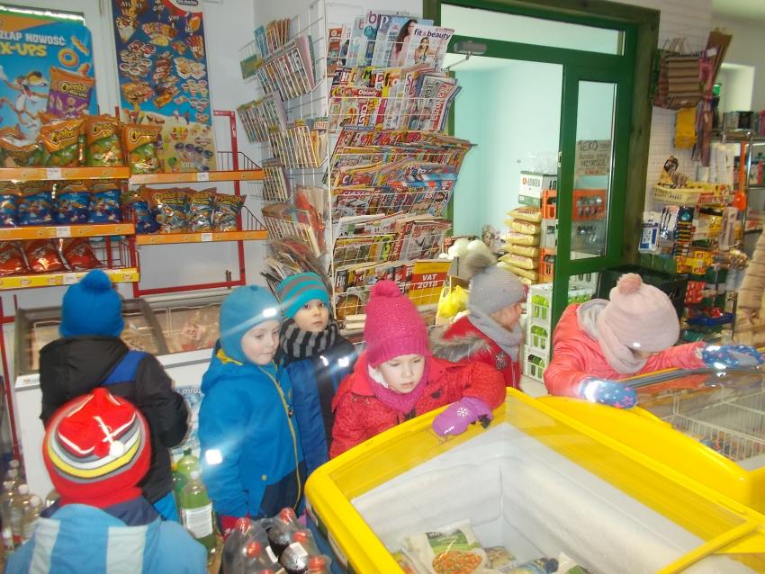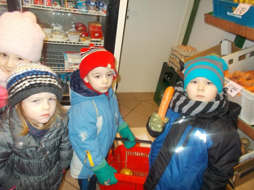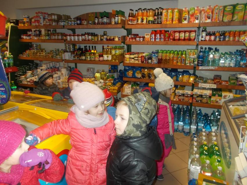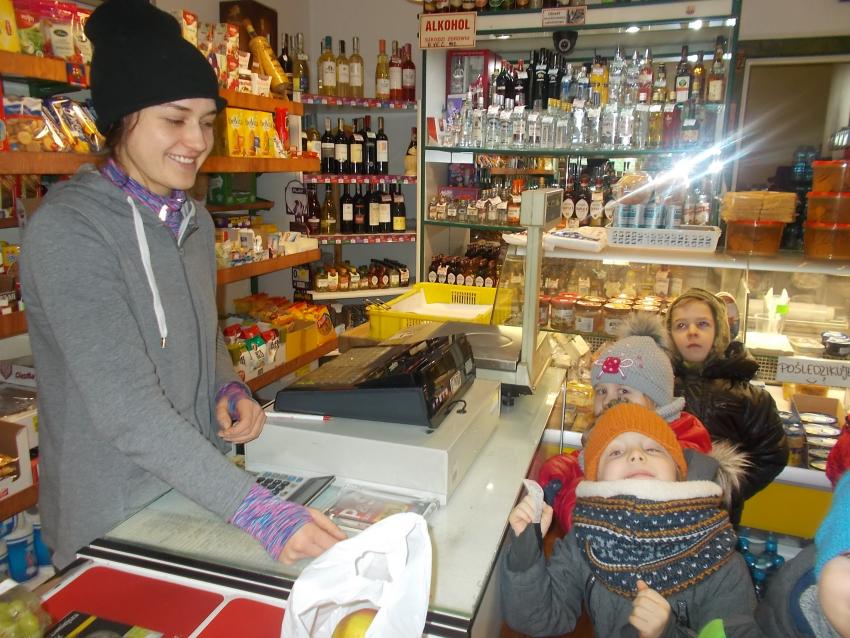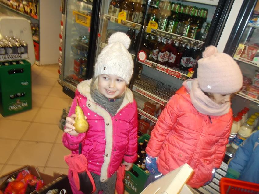 W tym tygodniu Pszczółki rozmawiają o sklepach. Dlatego też wyruszyły do sklepu spożywczego, aby obserwować prace kasjera oraz poznać asortyment sklepu. Dzieci zrobiły zakupy owocowo - warzywne do naszego kącika przyrody.