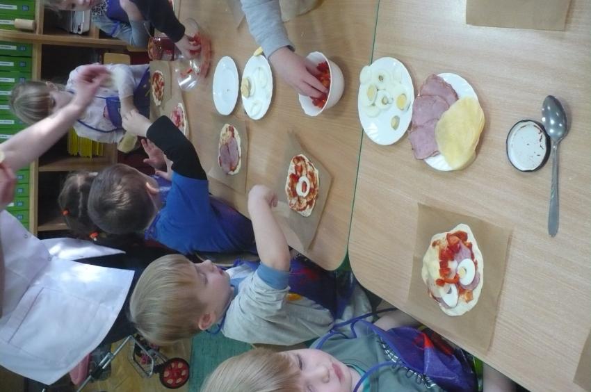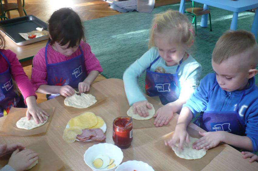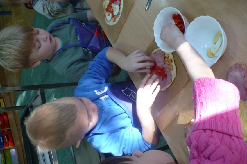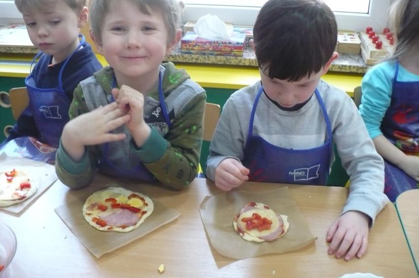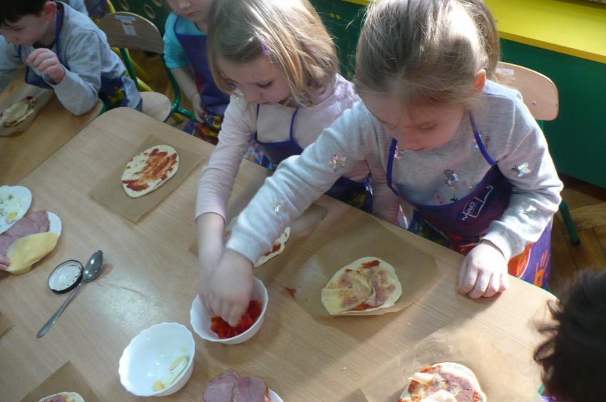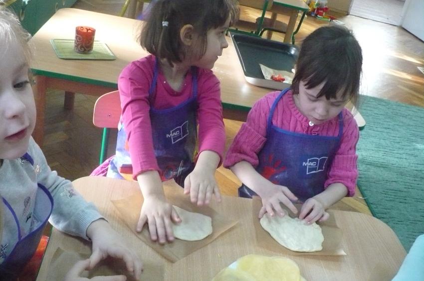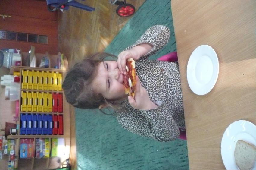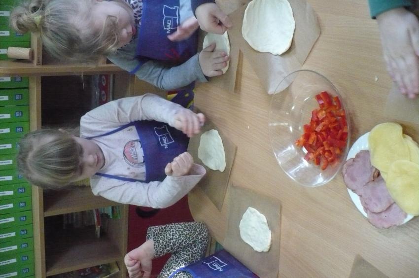 W przedszkolu wciąż nabywamy nowych umiejętności. Robiliśmy owocowy koktajl, marchewkowy sok, syrop z cebuli, kapustę kiszoną, samodzielnie przygotowywaliśmy sobie śniadania a tym razem poprzeczka została postawiona jeszcze wyżej. Pizza – to nie lada zadanie, któremu spostaliśmy wyśmienicie – palce lizać! Kto wie, może kiedyś otworzymy w Supraslu naszą pizzerię:)