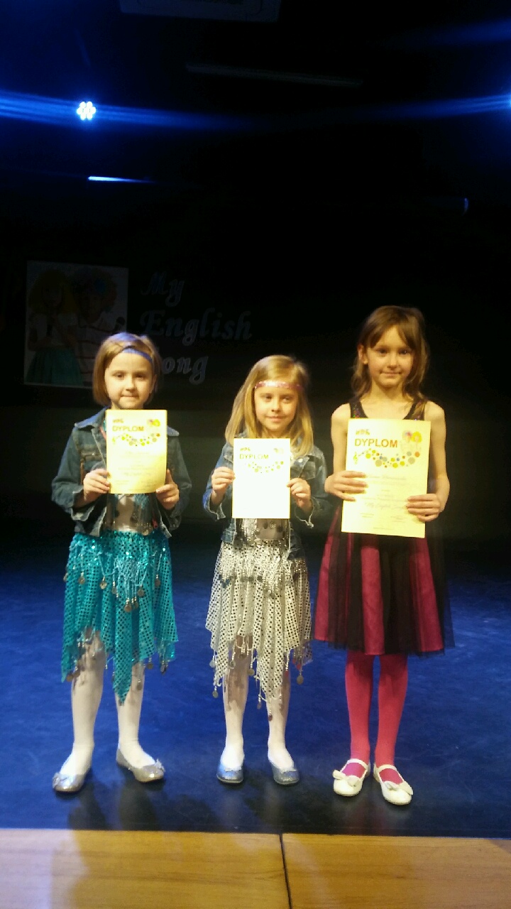 Hania Romanowska, Karolinka Domaszewicz i Ola Szymczuk reprezentowały nasze przedszkole w Wojewódzkim Konkursie Piosenki Angielskiej ,,My English Song". Stanęły na wysokości zadania zajmując czołowe miejsca i nagrody. Brawo dziewczęta!!!