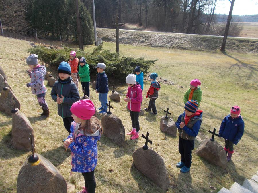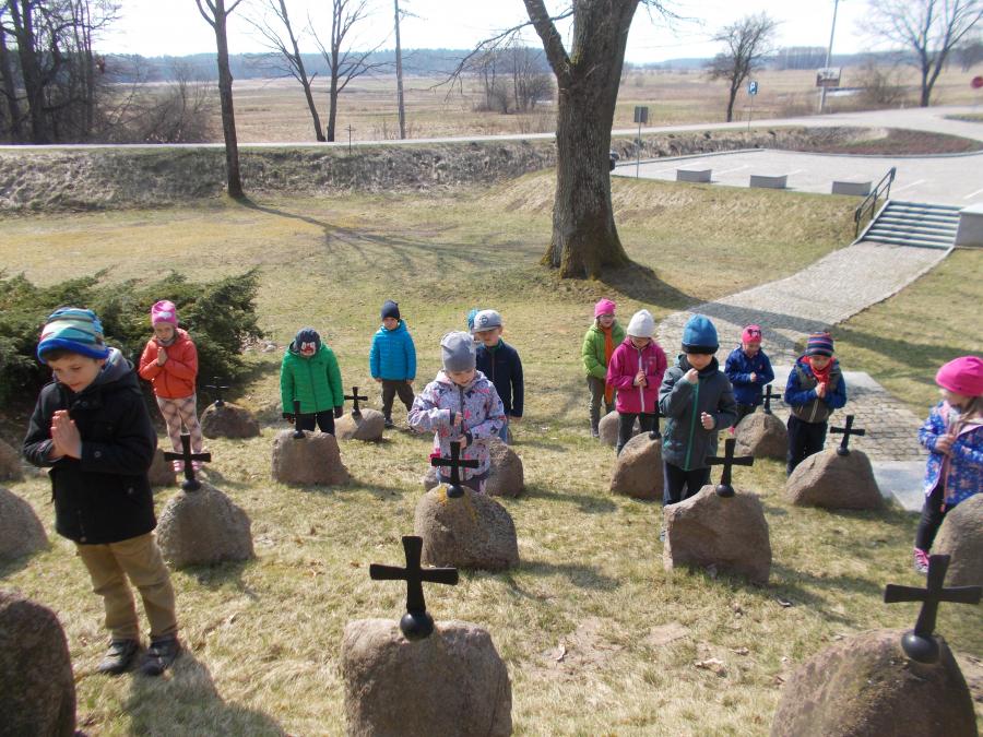 Przedszkolaki w ciepły wiosenny dzień pojechały do Arboretum obserwować owady w ich naturalnym środowisku. Niektóre owady takie jak: pająk, mrówka pod bacznym okiem pani leśnik zostały umieszczone w plastikowym pojemniku w celu lepszej obserwacji. Oczewiście po spacerze owadom została zwrócona wolność. Wykonały pracę plastyczną pt.: ,, Biedronka na łące" . Żywą lekcją historii było oddanie hołdu i zapalenie zniczy pod Pomnikiem Powstańców Listopadowych z Oddziału płk Józefa Zaliwskiego poległych w walce o niepodległość Rzeczypospolitej w bitwie nad rzeką Sokołdą 7 lipca 1831roku. Uczymy dzieci patriotyzmu na co dzień, by pamiętały o tych, którzy o naszą wolność walczyli.