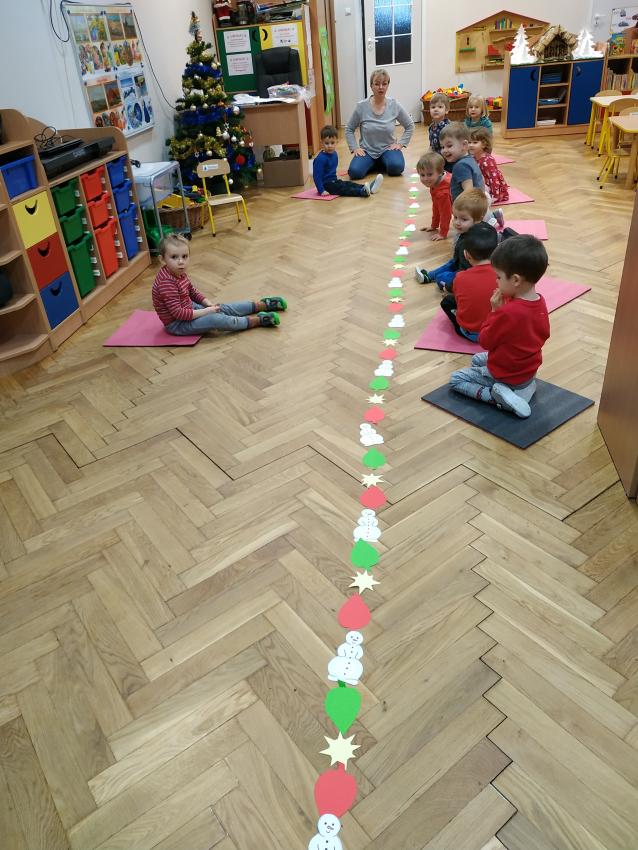 W oczekiwaniu na Boże Narodzenie poprzez zabawy dramowe i muzyczne uczyliśmy się kolędy Przybieżeli do Betlejem. Pomogliśmy także smutnym choinkom wystroić je w świąteczne gwiazdki a przy okazji tworzyliśmy podzbiory wg dwóch cech jakościowych. Pani Magda na gimnastyce zabrała nas nawet do krainy wiecznego lodu – na bieguny, gdzie bawiliśmy się razem z pingwinkami i za przykładem niedźwiedzi polarnych chodziliśmy po lodowych taflach. W środę przyczepiliśmy już ostatnią gałązkę w naszym kalendarzu adwentowym, co oznaczało, że jesteśmy gotowi by wspólnie z rodzinami świętować Boże Narodzenie.