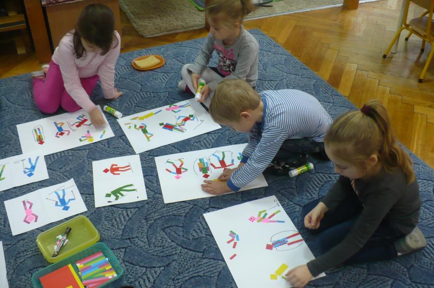 Przyszli mistrzowie zaczęli od wiadomości teoretycznych – poznali nazwy i podstawowe zasady zimowych dyscyplin sportowych. Chłopcom najbardziej spodobało się saneczkarstwo, więc postanowili zrobić sobie sanie bobslejowe z kartonowego pudełka. Jako że nie opanowali jeszcze wskakiwania do sań, z górki zjeżdżali na „jabłuszkach”.