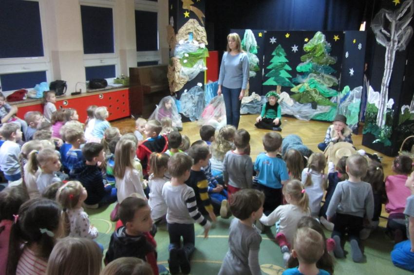 Starsi koledzy ze szkoły odwieddzili nasze przedszkole i pokazali swoje umiejęętności teatralne. Przedstawienie pt "Choinka" bardzo zainteresowało wszystkich przedszkolaków. Były gromnie brawa i słodki poczęstunek.