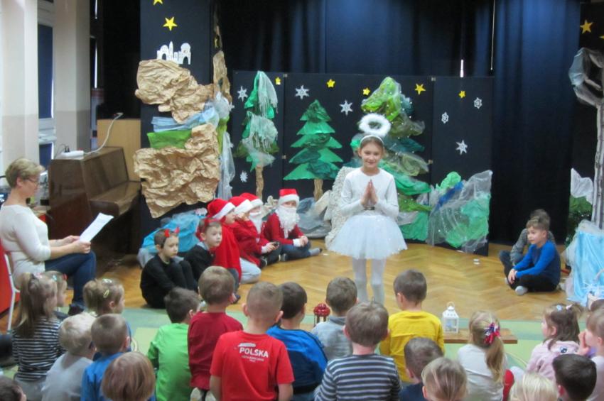 Czas świąteczny zawitał w przedszkolu..... Przybyli goście, wszyscy odświętnie ubrani. Dzieci z grupy Pszczółek przedstawiły Jasełka i grały kolędy. Były świąteczne życzenia, śpiew kolęd i słodki poczęstunek. Miło w takiej atmosferze rozpocząć swięta.