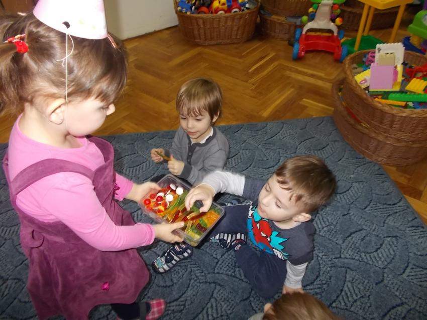 W poprzednim tygodniu Nasza Lilianka obchodziła swoje 3 - cie urodziny. Z tej okazji poczęstowała nas owocowymi cukierkami z galaretką, a także waflami. Udało nam się również umocować w tych słodkościach urodzinową świeczkę, by mogła wypowiedzieć życzenie...Wszystkiego najlepszego!!!