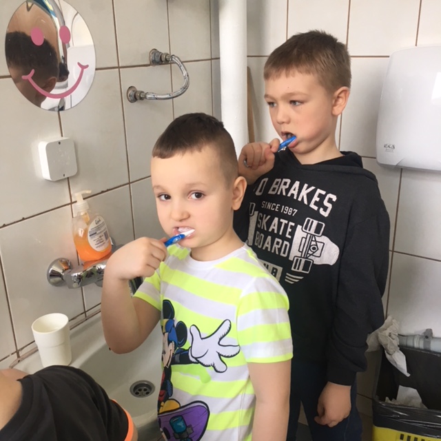 Dzieci z grupy "Gumisie" codziennie dbają o czystość jamy ustnej.