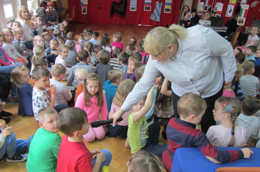 27 kwietnia obchodziliśmy Międzynarodowy Dzień Tańca. Małe i duże przedszkolaki poprzez szereg wesołych zabaw poznawały tańce charakterystyczne dla różnych krajów europejskich. Cieszymy się, że w odpowiedzi na nasz apel internetowy mogliśmy gościć u nas małych artystów, którzy zgłosili się, aby pokazać swoje umiejętności taneczne. Dziękujemy nauczycielce SP, Pani Eli Trochimowicz z klasą III A, dzięki której podziwialiśmy taniec z Polski oraz taniec i pieśń z Rosji. Dziękujemy też Kubie Puciłowskiemu z grupy Gumisie, który wspaniale zatańczył nam breakdance. Podziękowania należą się również Marice z białostockiego zespołu tanecznego Atom Mini, która pięknie wykonała taniec do muzyki z repertuaru Michaela Jacksona.