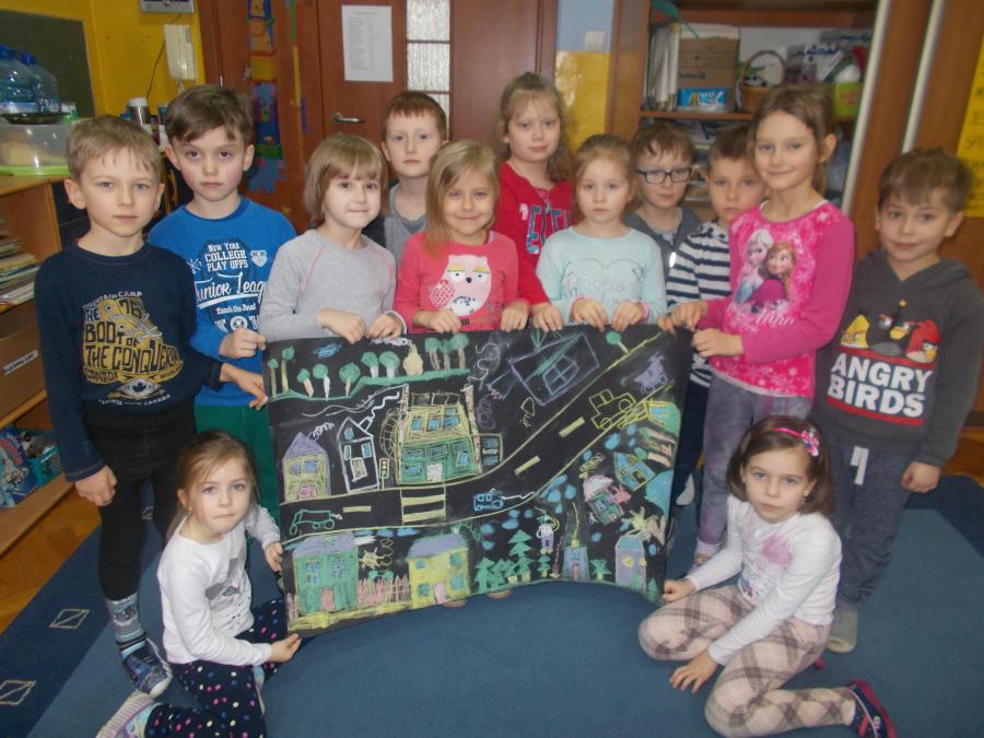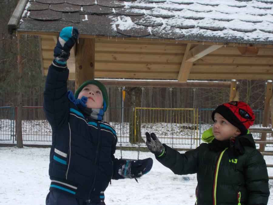 12 stycznia Pszczółki, po raz kolejny wybrały się do lasu, tym razem tropić ślady zwierzyny leśnej. Znalazły ślady lisa, zająca, sarny i jelenia. Po wyprawie do lasu, przedszkolaki wykonały w salce edukacyjnej prace plastyczna "Tropy zwierząt leśnych".